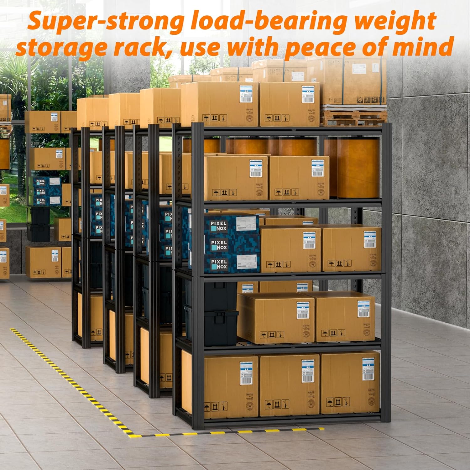 - 【Rust-Proof & No-Scratches Storage Racks】 The metal shelving uses an anti-rust painting tech, easy to clean, moisture-proof and rust-proof.You will obtain two pairs of anti-tipping kits to prevent basement shelves from shaking or tipping over. All legs are equipped with pads to prevent it scratching the floor. Our garage storage racks and commercial shelves w can better support your commodities and maintain stability.