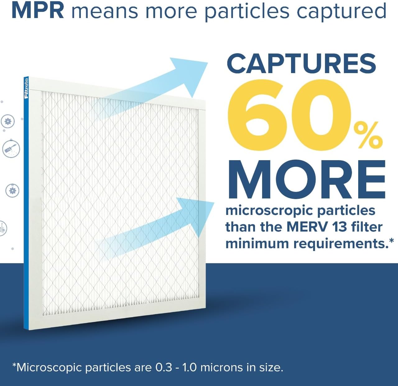 - CAPTURES MICROPARTICLES: AC Filter with a 1900 MPR and MERV 13 rating, as well as a 62% microparticle capture rate, your Filtrete Filter will help capture many microparticles between 0.3 and 1 micron from the air passing through it