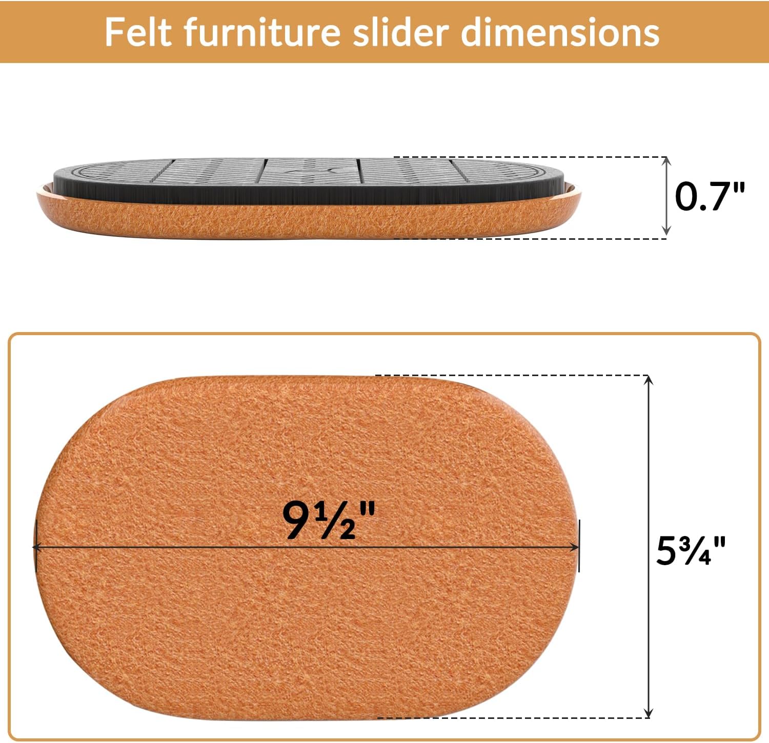 - 【Perfect Size】Each set includes 4PCS felt sliders with a diameter of 9.5*5.75 inches(240*145mm)—perfect for round, square,and irregularly shaped furniture legs.The size is ideal for heavy furniture,make moving furniture easier!