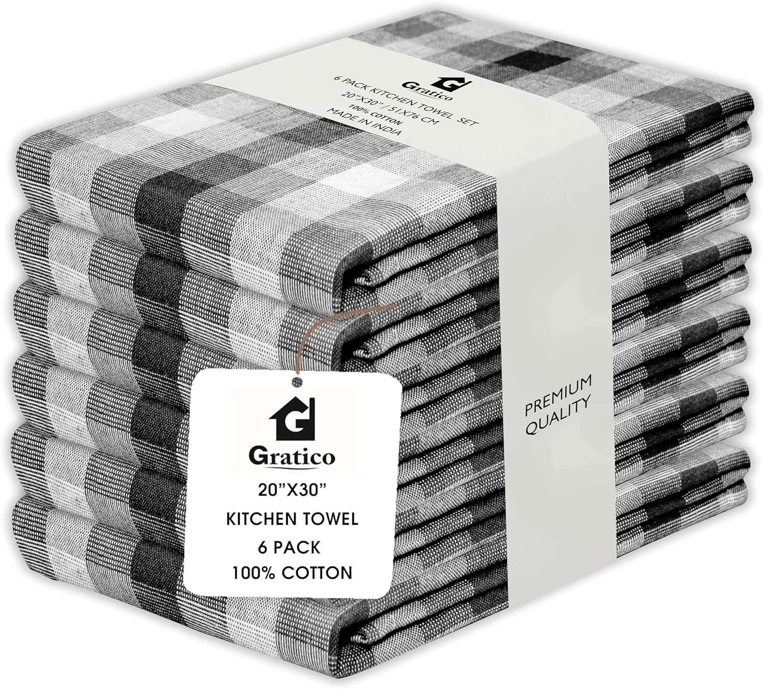 - SOFT AND SAFE: Crafted with 100% premium-quality cotton. Gratico Kitchen Towels & Dishcloths are very soft, absorbent, odor free and safe for all skin Types. Lint free, min shrink, quick dry with hanging loops and no color fade after multiple wash, Its perfect for everyday use.