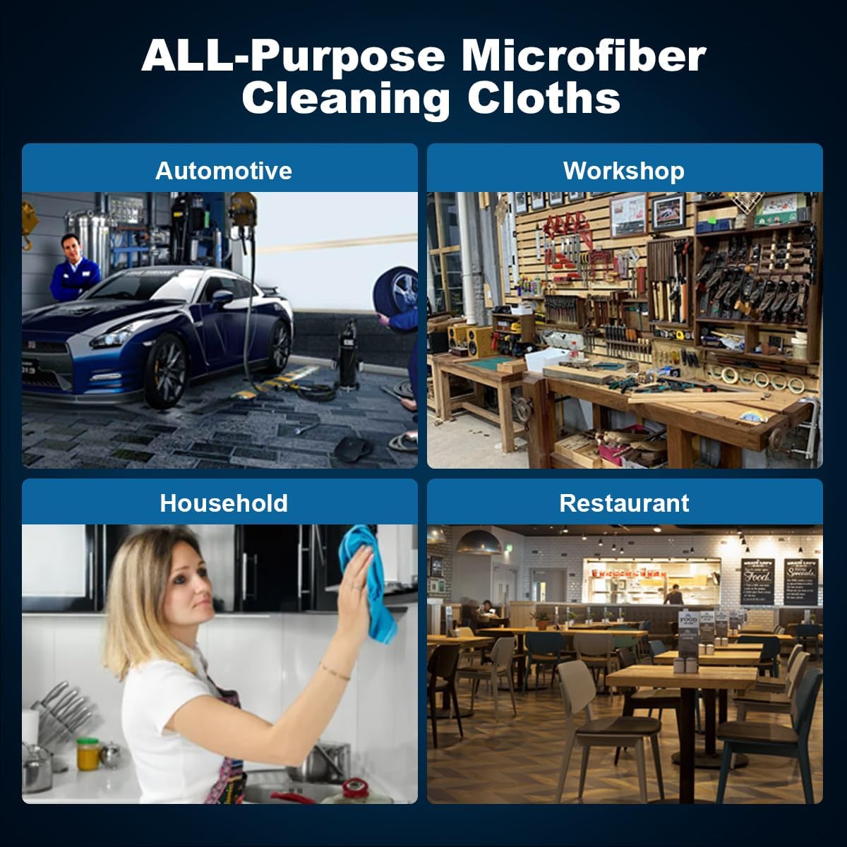 - Lint-Free & Scratch-Free: Made from premium microfiber, our shop towels are luxuriously soft to the touch and designed to prevent any scratching or lint residue. These microfiber cleaning cloths ensure that no fibers cling to surfaces, making them ideal for delicate tasks such as car detailing, machinery cleaning, surface wiping, and hand drying
