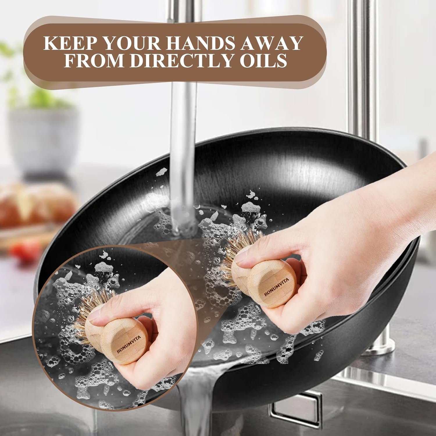 - CLEANING KITCHENWARE: Our kitchen brushes for dishes are good for cleaning cast iron pans,cast iron skillet, steel pots, casseroles, and plates