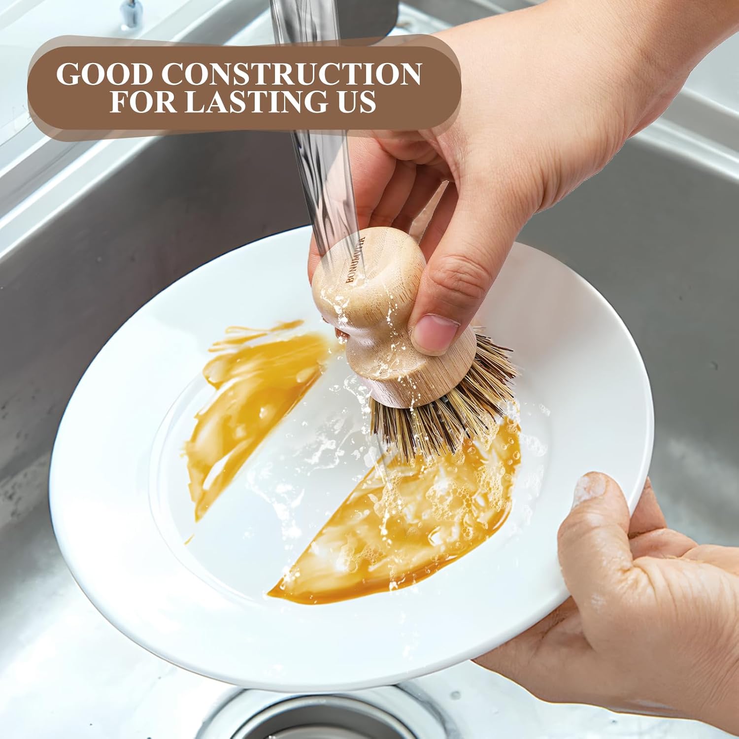 - NATURAL MATERIAL: With bamboo handle,the bristles made from a blend of palm fibers and sisal, good for scrubbing grease and grime from kitchen dishes