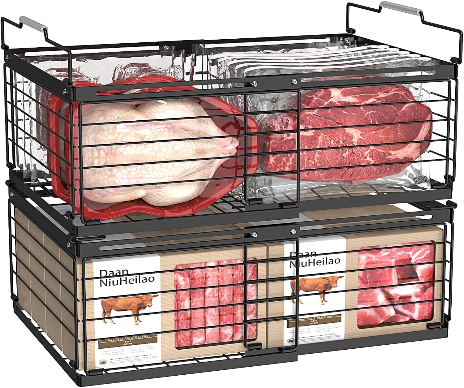 - Multi functional handle & Effortless Access :Fold the handle downwards to stack basket up, protecting soft or delicate items from compression damage before they freeze. Lift the handle upwards to simply lift bins,hassle-free access to deep freezer essentials without disruptive digging. No more frozen fingers!