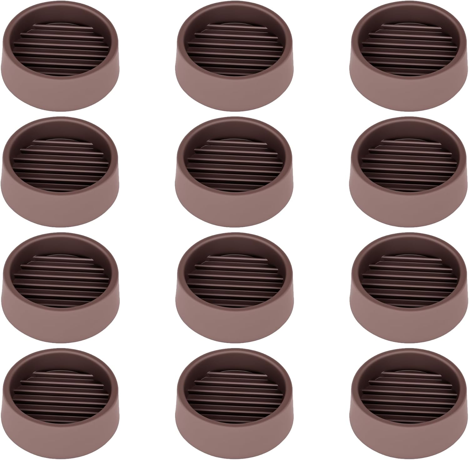 Non Slip Furniture Pads, 1.5” Round Rubber Caster Cups, 12 Pcs Furniture Coasters, Anti-Slip Gripper, Anti Slide Furnitures Feet Floor Protectors for Bed Couch Stoppers - Brown