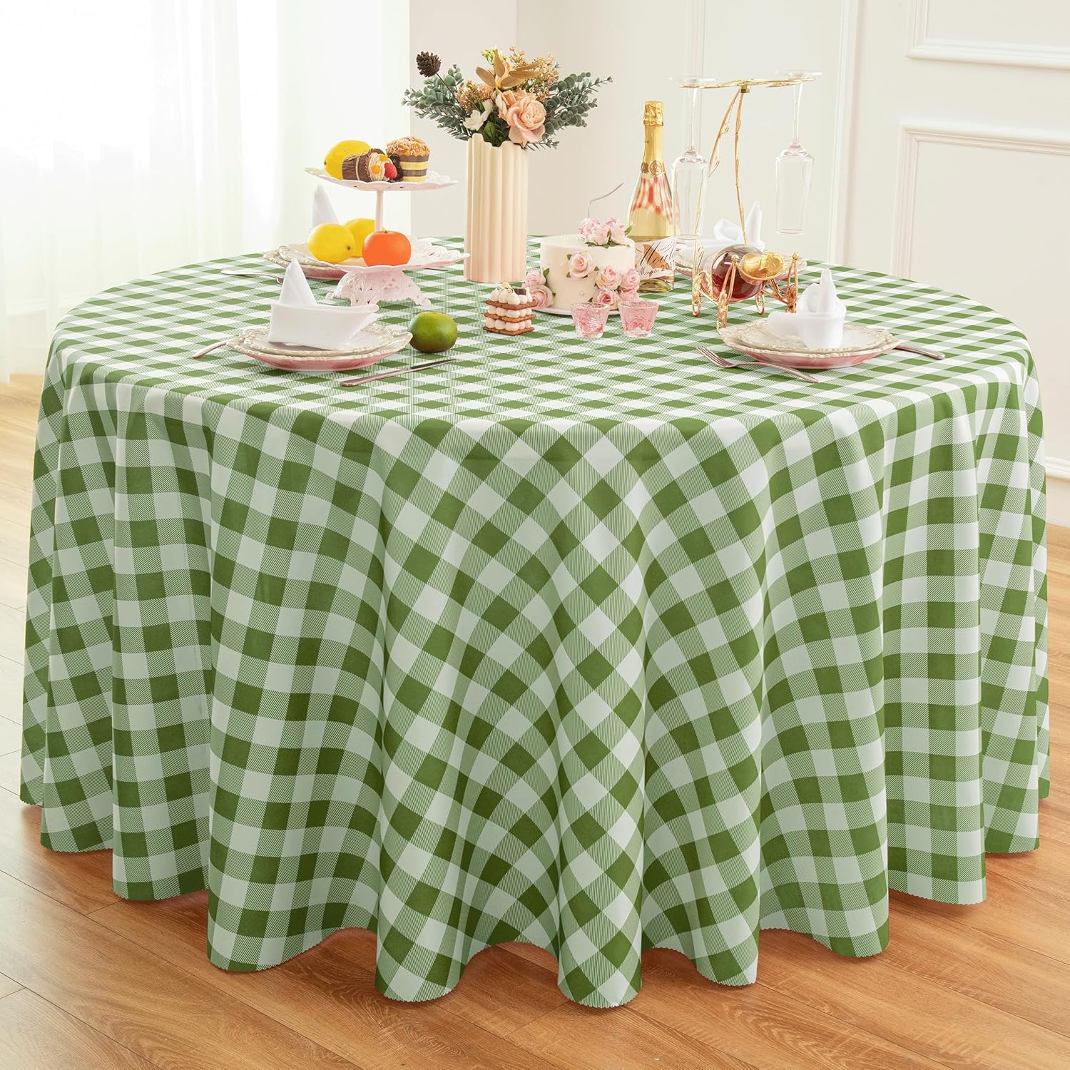 Waterproof Plaid Tablecloth Fabric - Round 120 Inch Classic Gingham Checker Table Cloth for Indoor/Outdoor Use - Buffalo Table Cover for Picnics, BBQs, and Parties