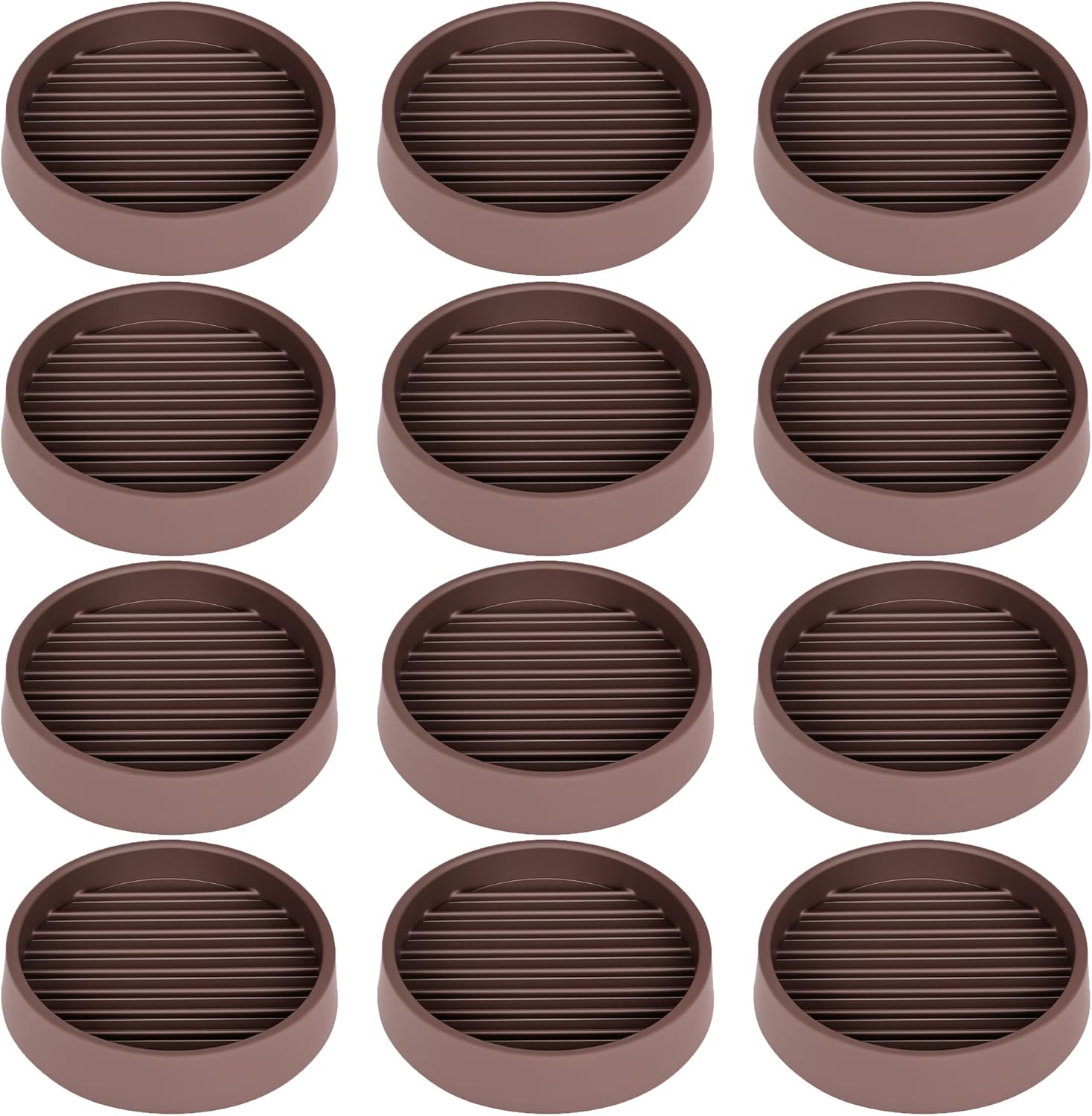 Non Slip Furniture Pads, 2.5” Round Rubber Caster Cups, 12 Pcs Furniture Coasters, Anti-Slip Gripper, Anti Slide Furnitures Feet Floor Protectors for Bed Couch Stoppers - Brown