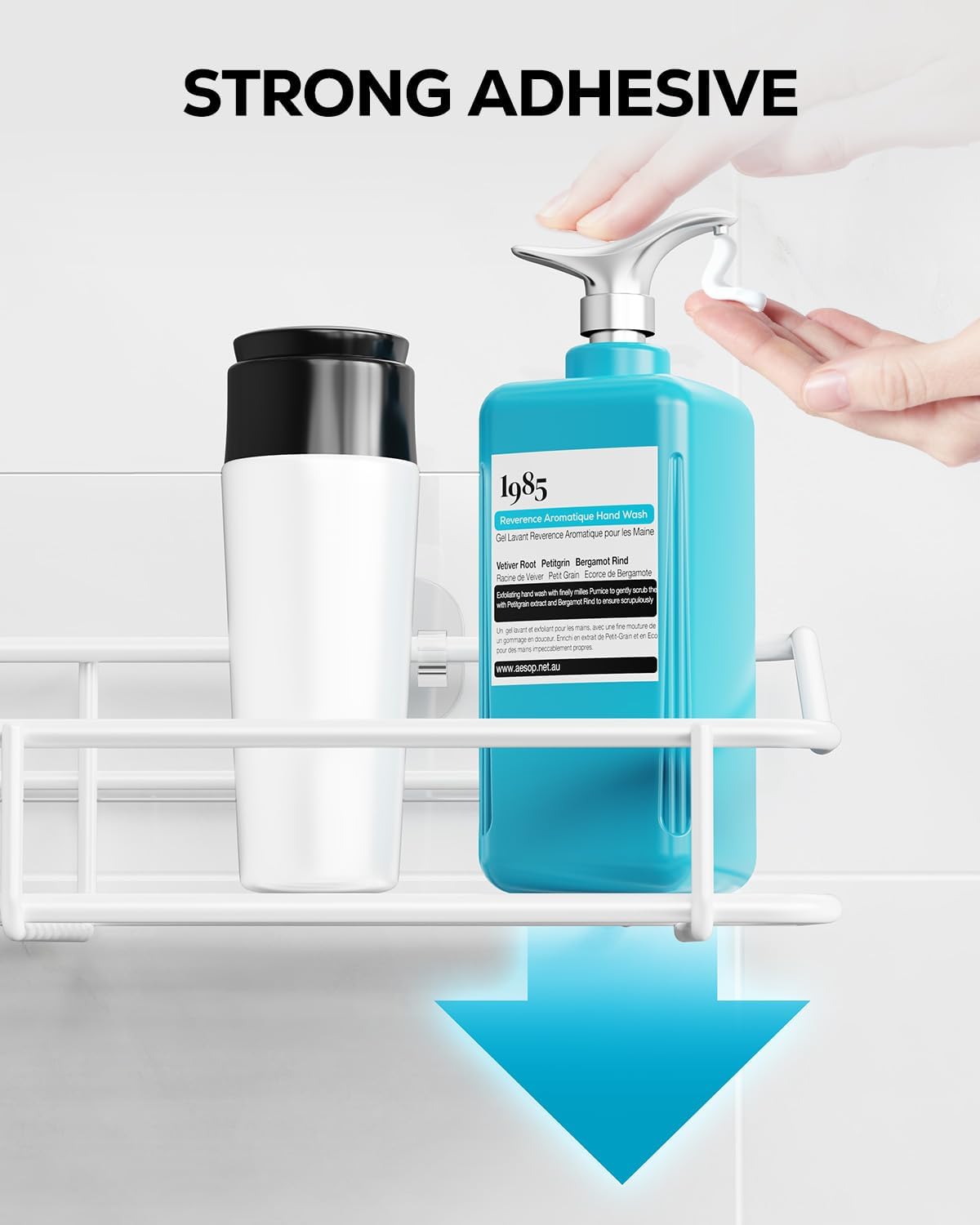 - 🔎[Damage Free]: Stick the adhesive to the wall and hang the shower caddy on the hooks. No drilling is required, no damage to your wall, no left marks, simple installation. It feels more sturdy than suction ones.