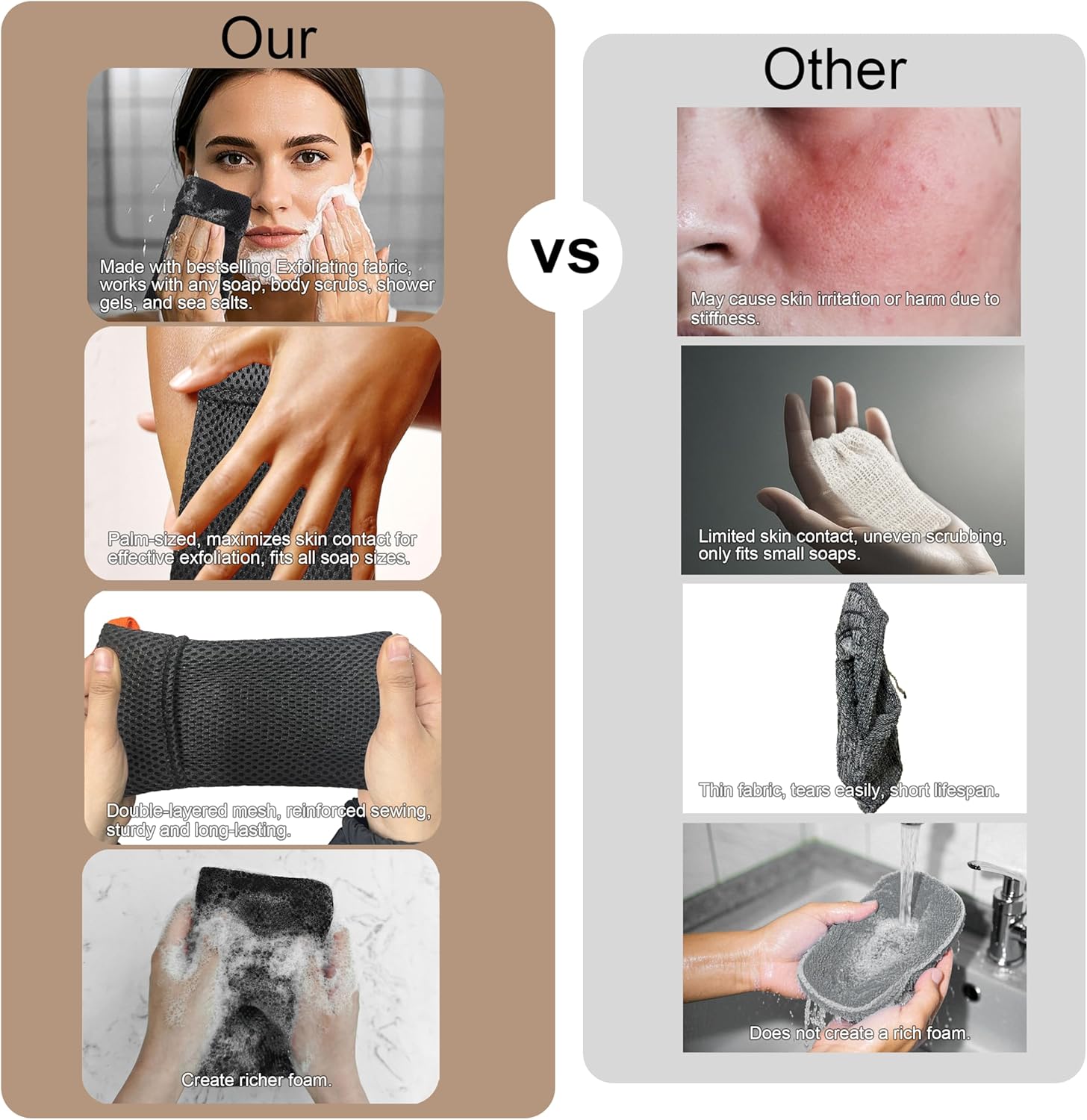 - Effective Exfoliation: The gentle fabric cleanses deeply without harming your skin, removing dead skin and impurities for a refreshed, youthful appearance.