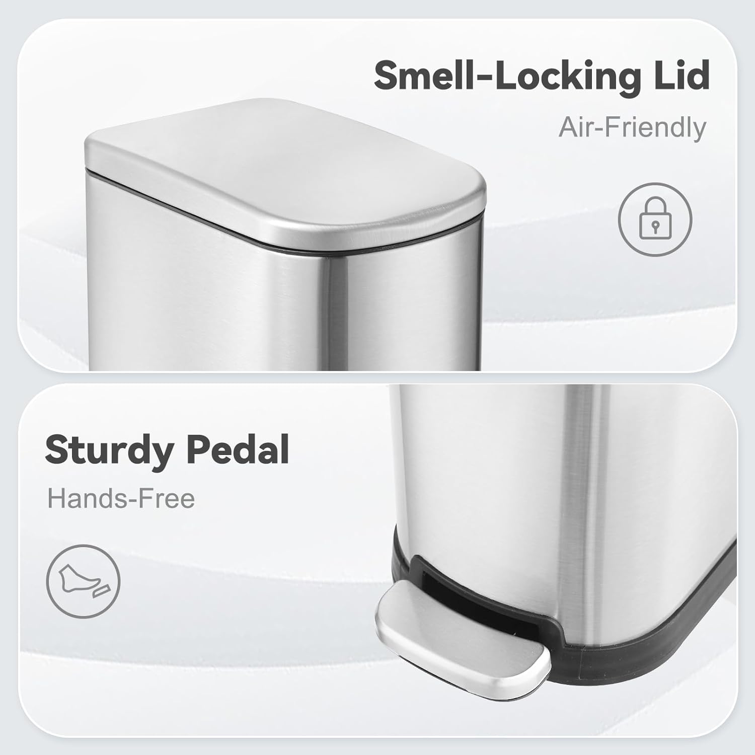 - Space-Saving Design: Despite its slim profile, this 3.5-gallon trash can provides sufficient space for everyday waste without taking up too much room. The compact design is perfect for tight areas such as bathrooms, kitchens, or offices, while its generous capacity reduces the need for constant emptying