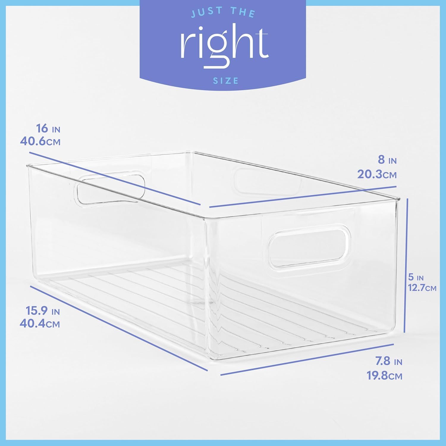 Plastic Food Storage 8 Pack Clear Container Bin with Handles for Organizing Kitchen, Pantry, Refrigerator, Freezer, Pantry, Cabinet, Closet, Bathroom. 16”x8”x5”