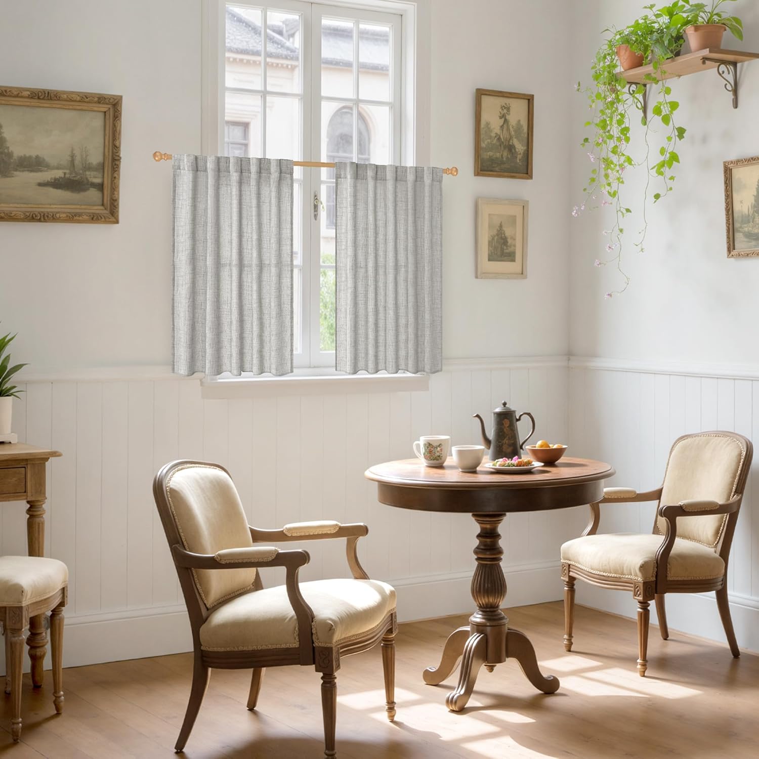 YoungsTex Light Grey Linen Curtains 40 Inches Long for Kitchen Cafe Window, Short Length Semi Sheer Drapes Back Tab Rod Pocket Light Filtering for Bathroom Bedroom, 2 Panels, 42 X 40 Inch