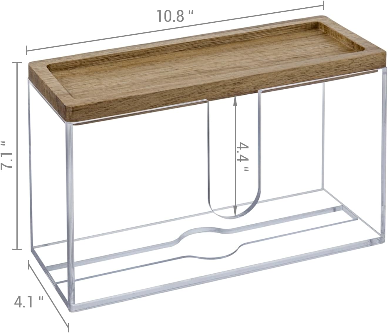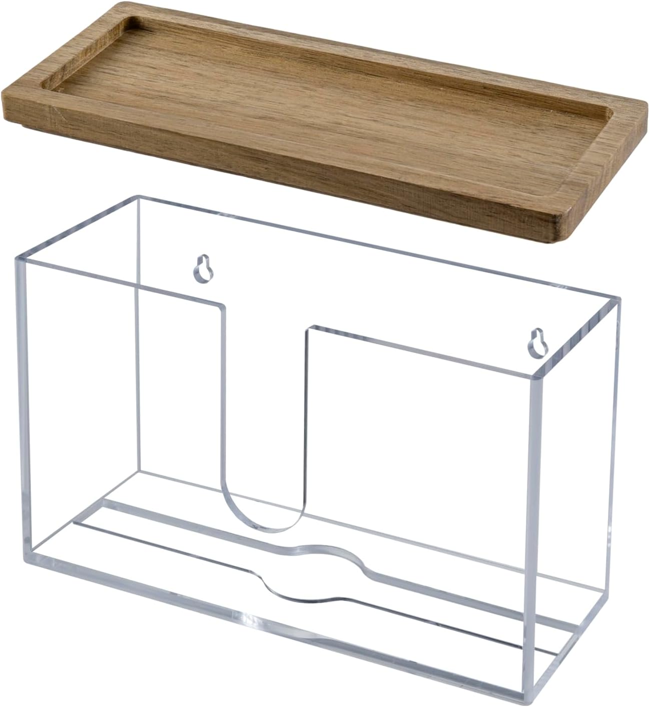 MyGift Deluxe Modern Metal Folded Commercial Paper Towel Holder with Rustic Burnt Solid Wood Tray Lid, Wall Mounted Trifold Multifold Z Fold Disposable Napkin Dispenser (Acrylic & Acacia Wood)