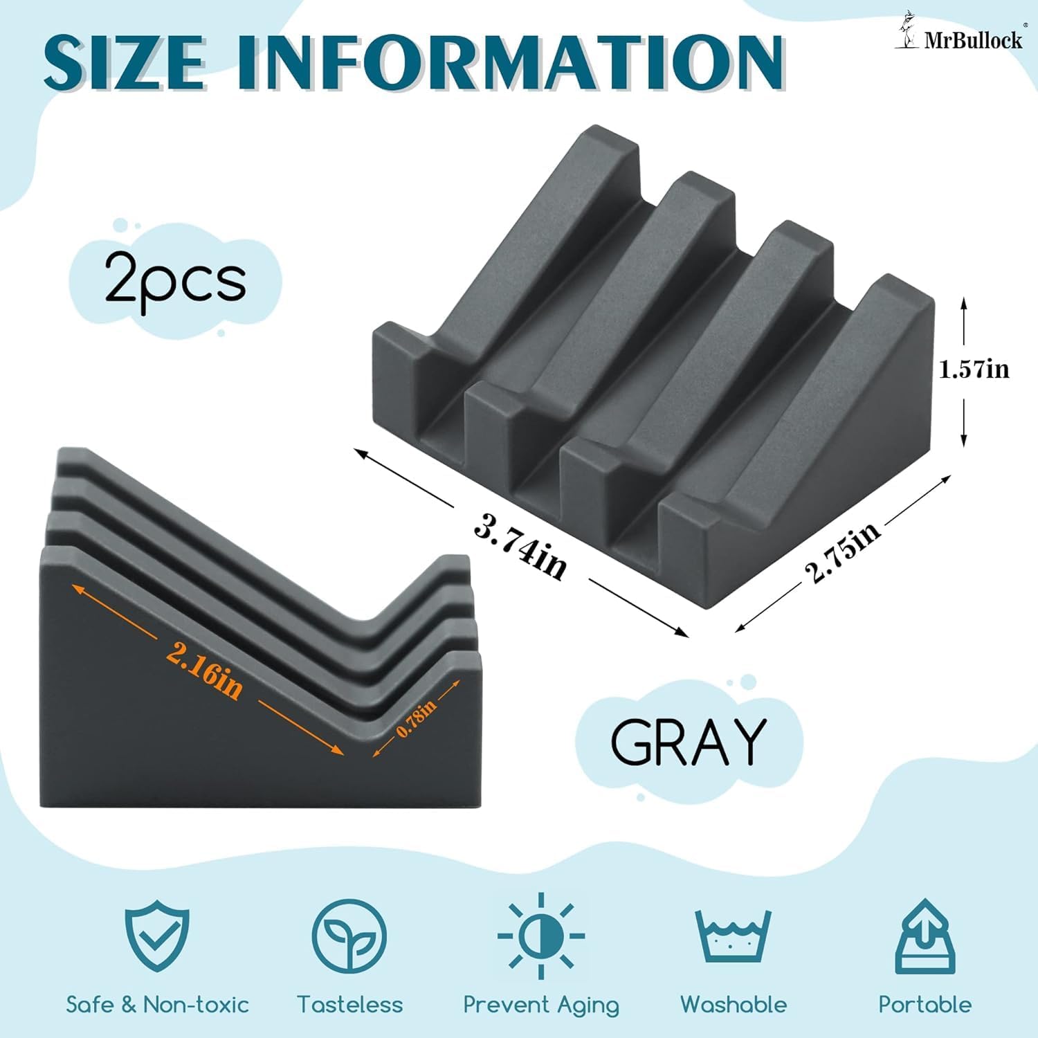 Silicone Soap Dish for Bar Soap Holder for Shower Bathroom Self Draining Waterfall Drying Tray Keep Soap Bars Dry Clean & Easy Cleaning (Gray, 2)