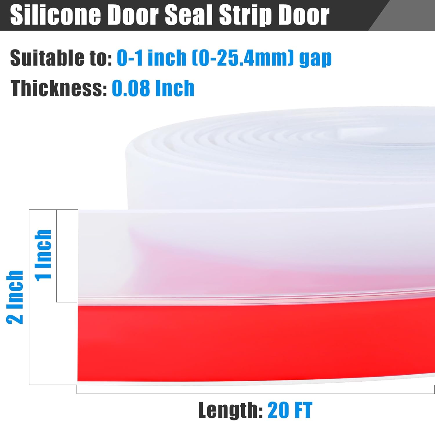 - 【Silicone Seal Strip】The window sealing strip is 20ft length and can be cut to your needs. Width: 2in/51mm, thickness: 0.08in/2mm, back glue width: 1in/25.5mm, suitable to: 0-1in (0-25.4mm) gap