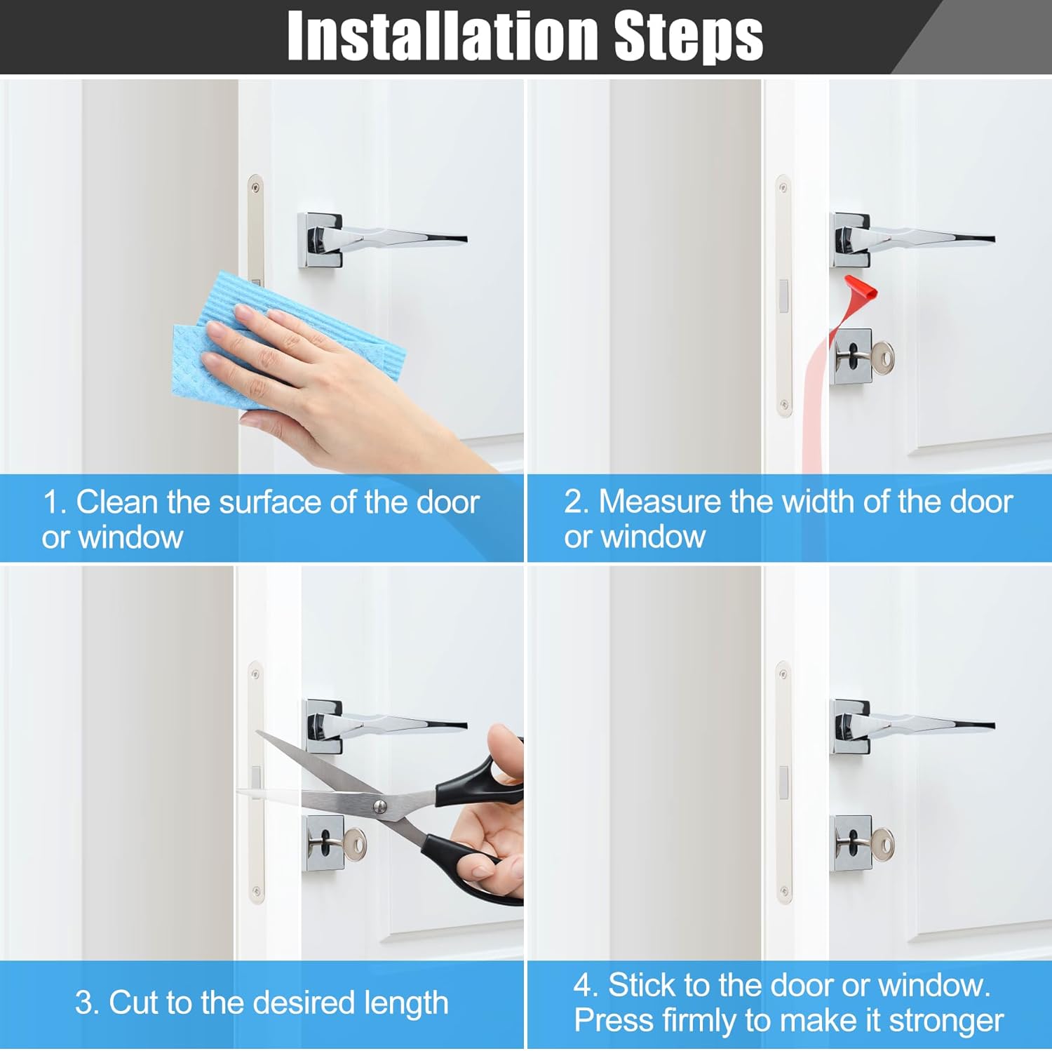- 【Easy to Install】Match the desired length to the door or window, then cut and paste into place after cleaning. If the temperature is too cold, it would be better to use a hair dryer to heat the adhesive