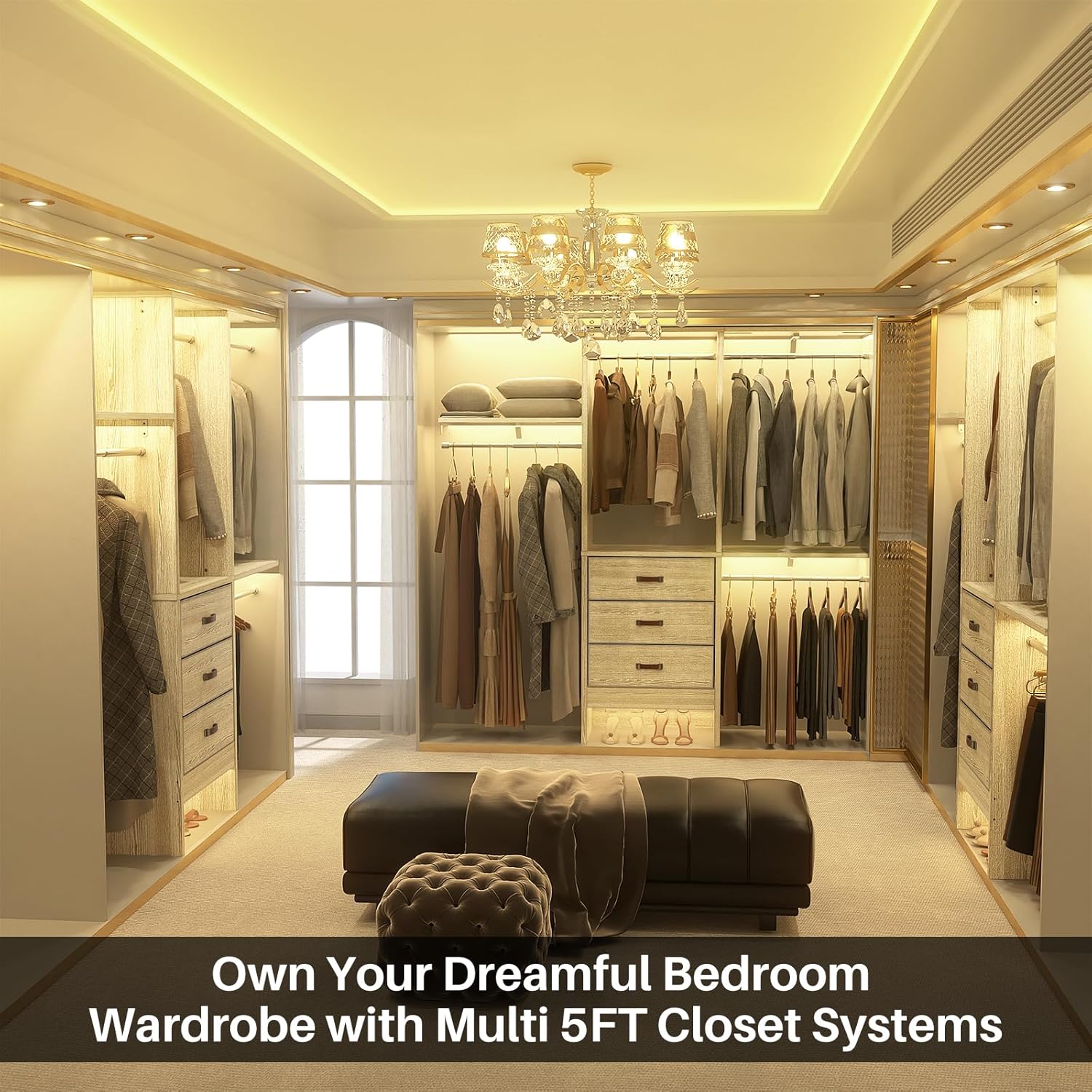 - 60'' Closet System with 3 Fabric Drawers - This 5ft closet system is a perfect home organization system for closet spaces to store shirts, pants, jackets, sweaters, shoes, decor or other items. Note: As the fabric drawers can get more storage space for clothes, we use fabric drawers for this 5ft closet system. If you want the closet system with 3 wooden drawers, you can check our 8ft(96 inches) closet system too.