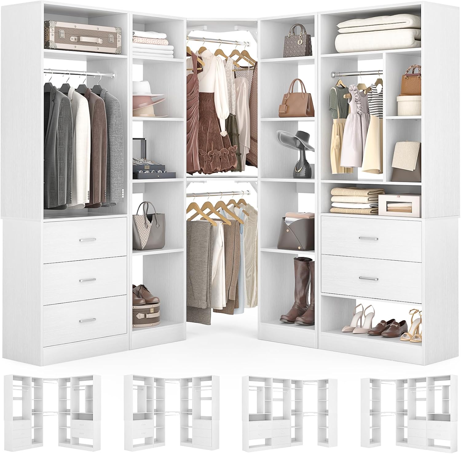 - DIY Customize Your Dream Walk-in Closet: Our closet systems put the design in your hands, allowing you to DIY to your liking. You have the flexibility to mix and match different modules based on room size, personal style and storage requirements to create an dreamful L- or U-shaped walk-in closet.