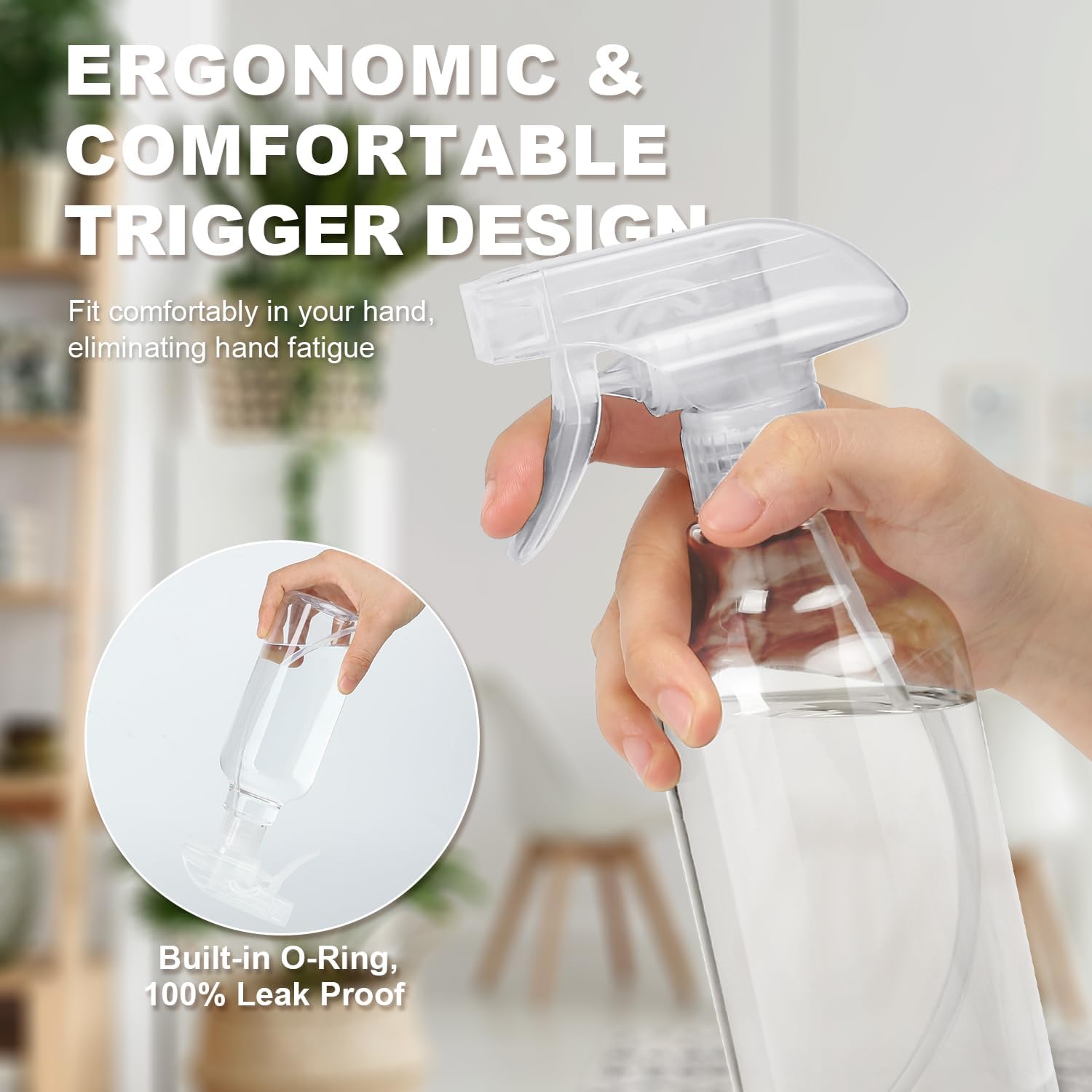- Leakproof & Anti-Clog Design: Equipped with a 360° twist cap closure and an O-ring seal, our spray bottle is 100% leakproof, keeping your contents securely inside. The tight seal prevents any accidental drips, ensuring a mess-free experience.