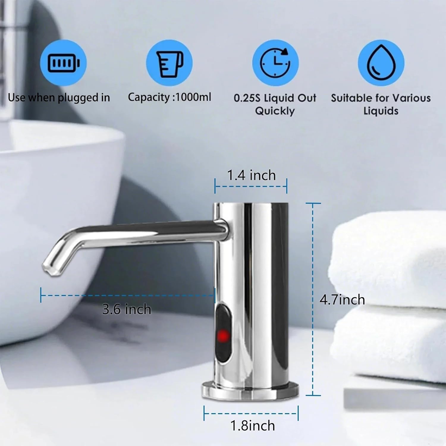 Automatic Soap Dispenser Touchless for Kitchen and Bathroom, Sink Built in Commercial Electric Soap Dispenser,Upgraded Infrared Sensors, with Bottle and Pump Electroplated 33.81oz/1000ml