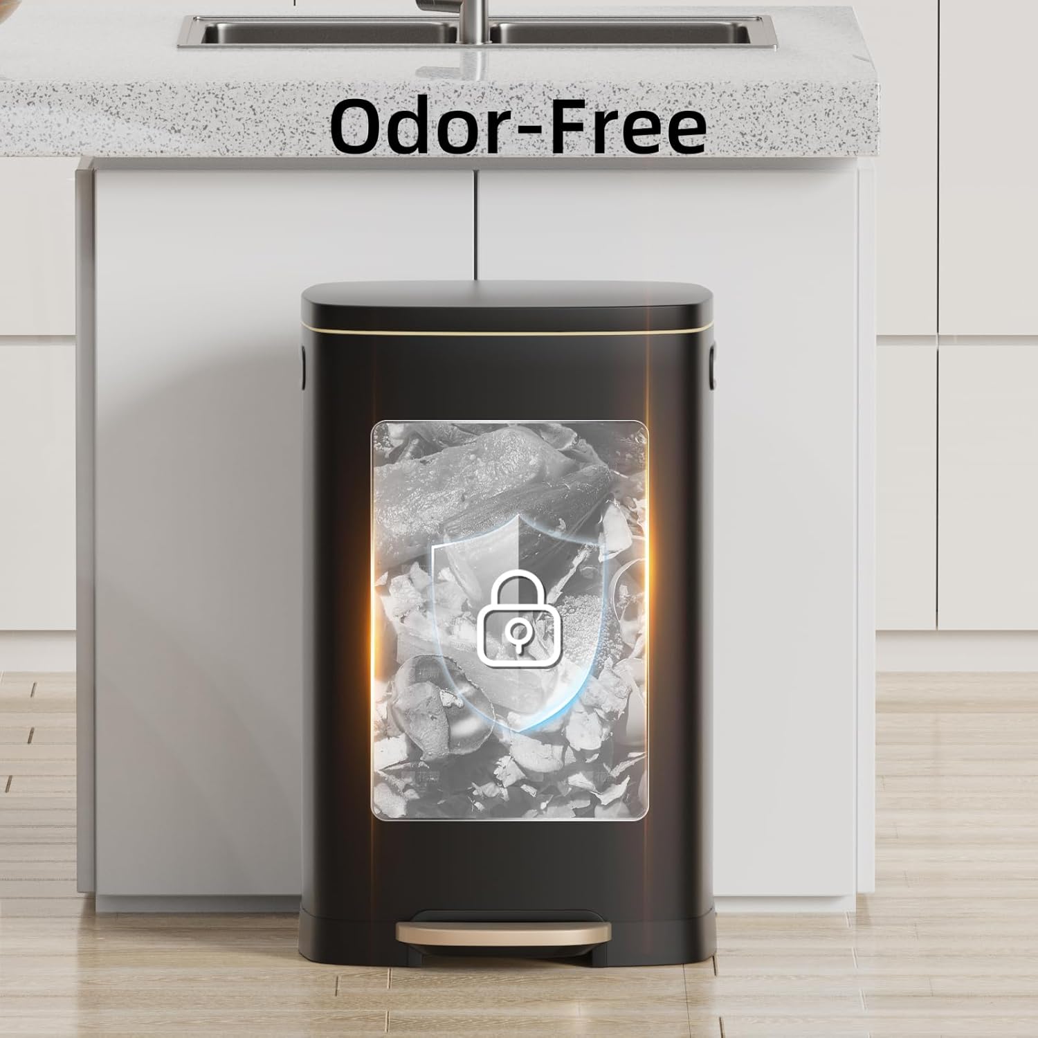 - 🚮 Large Capacity & Odor Lock Technology: 50L (13 Gallon) extra-large capacity reduces frequent trash runs, perfect for busy kitchens. Sealed lid with odor-blocking design traps smells, keeping your space fresh and clean.