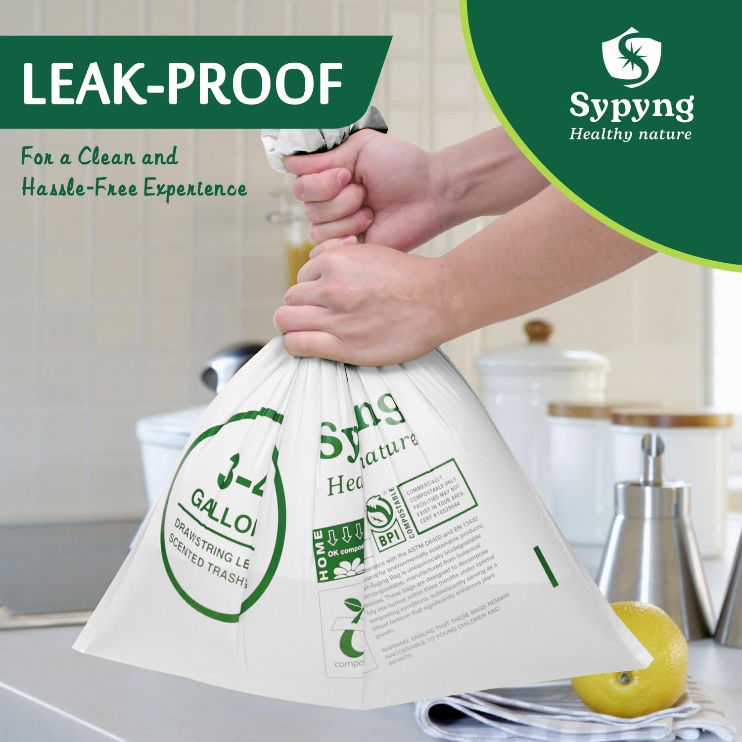 - COMPOSTABLE TRASH BAGS – Our 3–4 gallon trash bags are made with premium, eco-friendly technology to deliver 100% biodegradable and compostable performance. Lightly lemon-scented for a fresh, clean experience, they’re perfect for kitchen scraps, garden waste, or office trash. Certified to meet ASTM D6400 standards and OK Compost HOME certified, these bags break down naturally in your home compost bin—making them even more eco-friendly than industrial compostable bags.