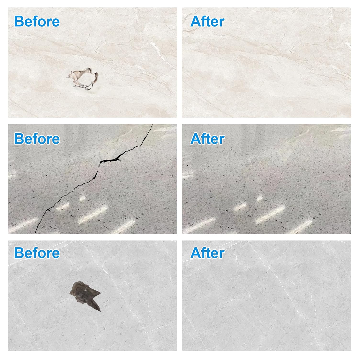 - Multi-Surface Versatility – Our repair kit is designed not just for marble but also for granite, quartz, porcelain, ceramic, travertine, limestone, slate, sandstone, acrylic, fiberglass, and more. It effectively restores countertops, sinks, bathtubs, tiles, and even dinnerware, making it an essential solution for household and commercial repairs.