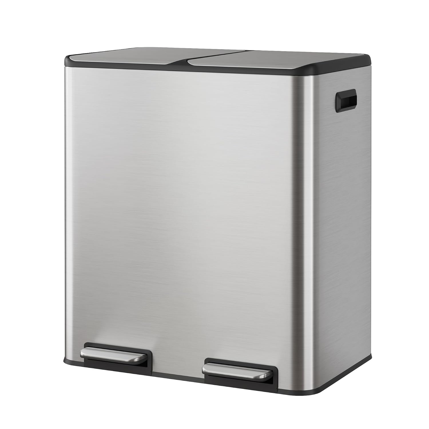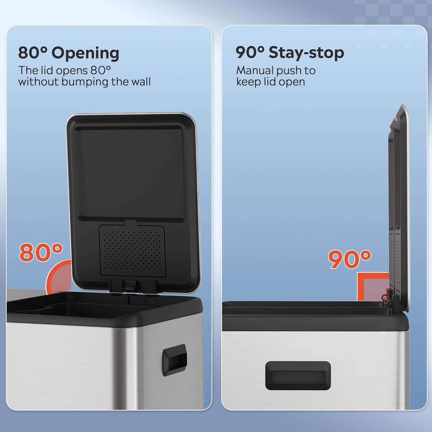 - Large Capacity Dual Trash Bins: Features two 30L removable bins and fixed slots for easy installation. Comes with sorting stickers to help you easily distinguish between trash and recyclables.