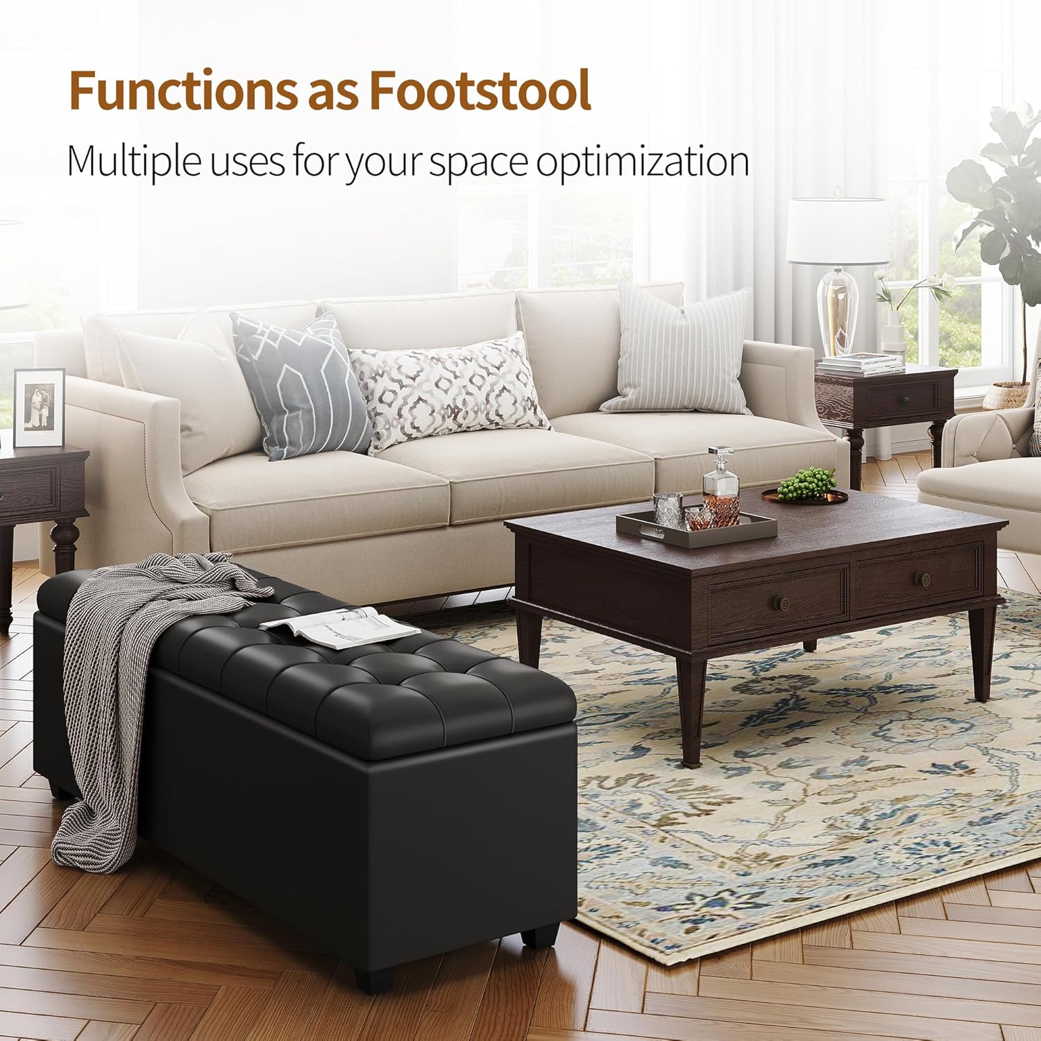 - 【 Spacious Storage 】 About 36.2" x 14.5" x 9.4" as its inner storage size,this 38 inch long storage ottoman bench with hinged lid provides you with lots of area to store things like toys,books,clothes,backpacks,blankets,shoes,seasonal items and more