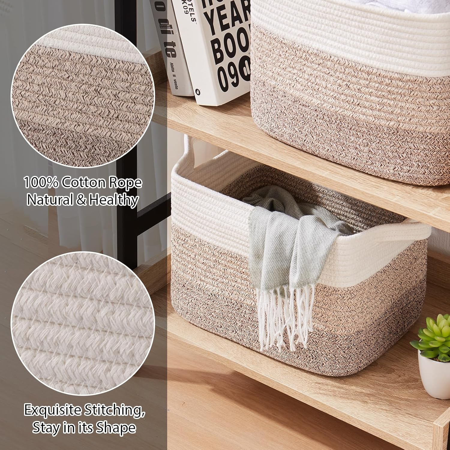 - Portable & Flexible: Small baskets for organizing with separate handles for easy portability and storage. Made with flexible and thick cotton rope, our baskets are designed to be strong and long-lasting. Keeping your belongings organized and easily accessible at all times