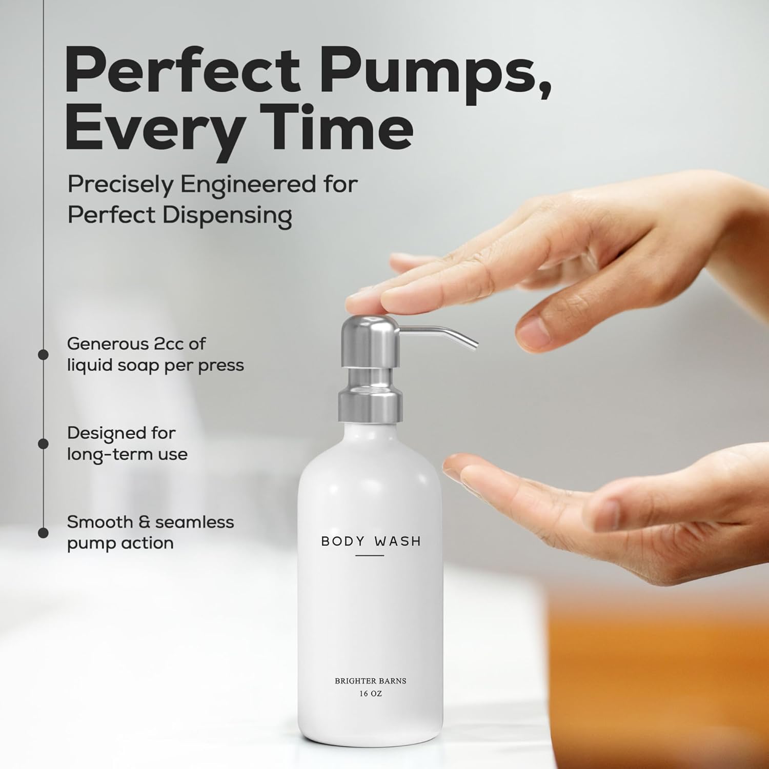 - AMERICAN DESIGN, UNCOMPROMISING QUALITY - Crafted with meticulous attention to detail, our aesthetic shower dispensers features a set of 3 ultra-durable, sturdy and shatterproof 16oz PET plastic shower bottles and corrosion-proof 304G stainless steel pumps. All designed in the USA to provide unbeatable quality and enduring style that you can trust.