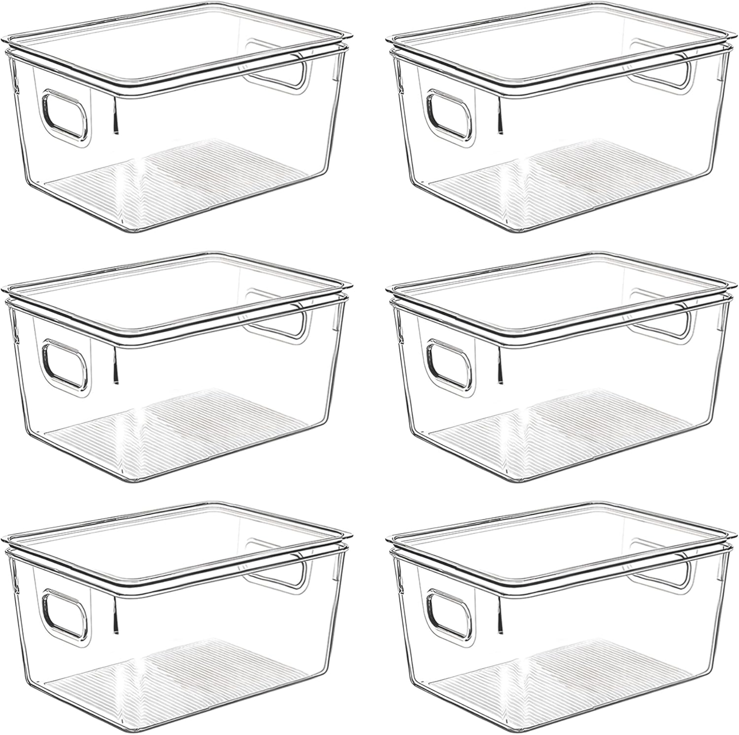 Clear Plastic Storage Bins with Lids, Perfect for Kitchen Organization or Pantry Organization and Storage, Stackable Fridge Organizer Bins, Storage Containers for Organizing, Cabinet Organizers