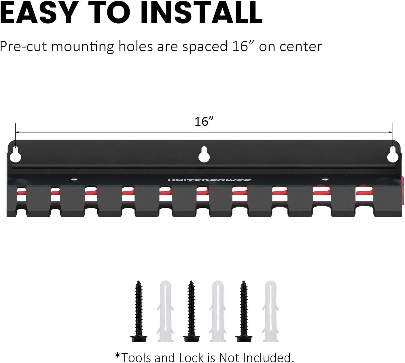 UNITEDPOWER Pry Bar Holder, Lockable Wall Mount Storage Rack Organizer for Workshop, Shed, Garage, Home, Stores up to 10 13 Tools or Extensions