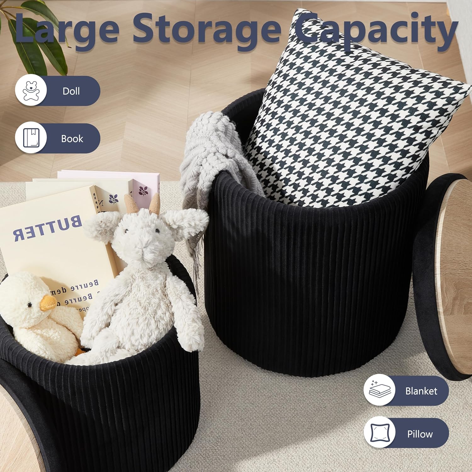 - 【Ample Storage Space】Both the large and small ottomans offer generous storage capacity. You can place them in the entryway to store shoes, in the living room for blankets and throw pillows, in the children's room to organize toys, or in the dressing room for cosmetics, bags, and other essentials.
