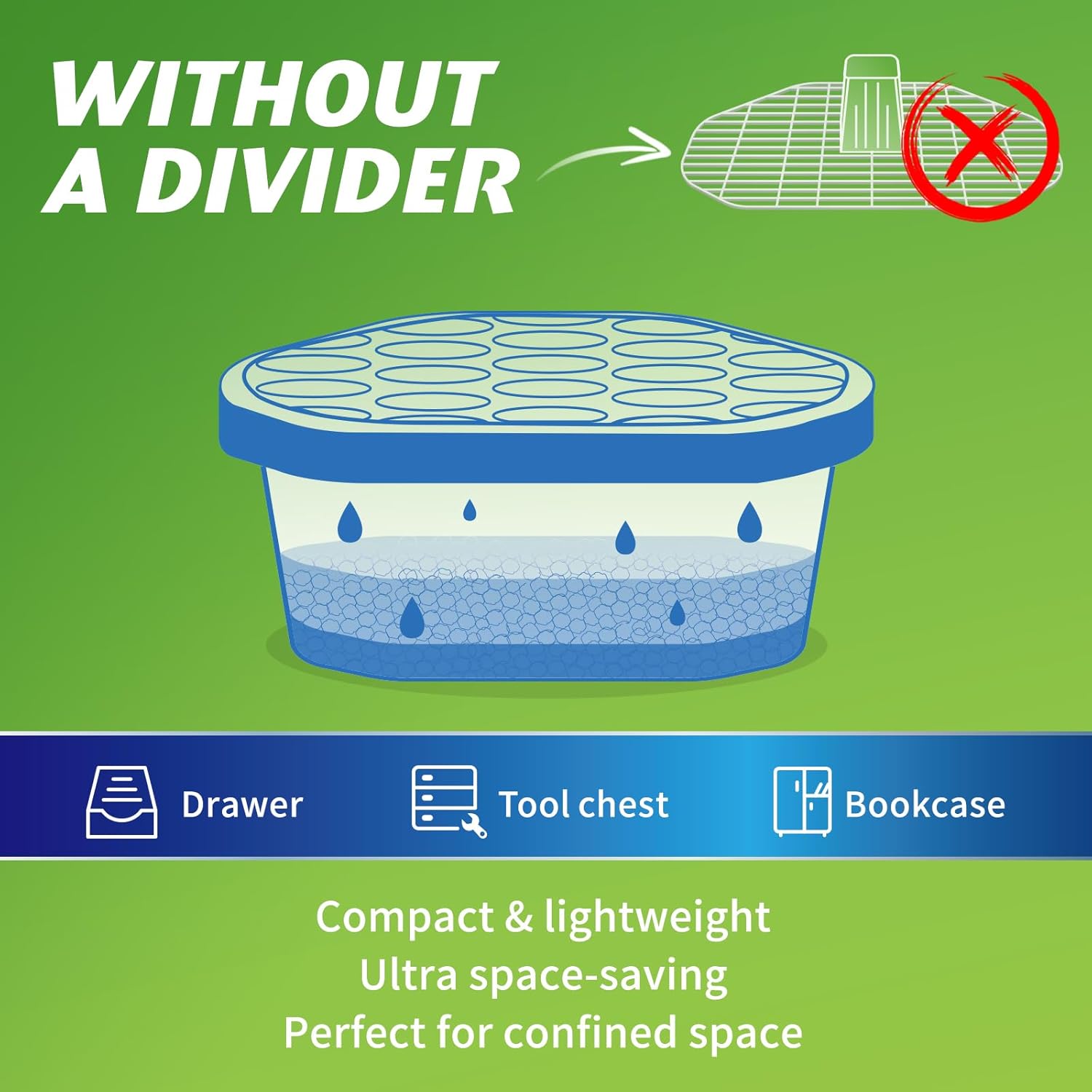 - LEAKPROOF DESIGN: Ksend moisture absorbers for rooms are equipped with a unique moisture-locking paper design. This innovative feature ensures that even if the boxes are accidentally overturned, the collected water will remain securely contained. You can confidently place them anywhere without worrying about water leakage.