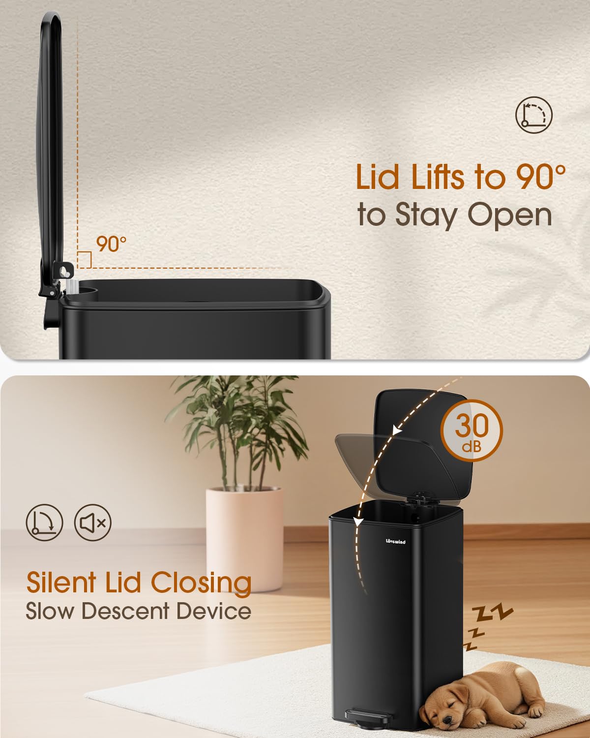 - Stainless Steel Construction: Our kitchen trash can is made from high-quality stainless steel, ensuring durability and resistance to rust and stains