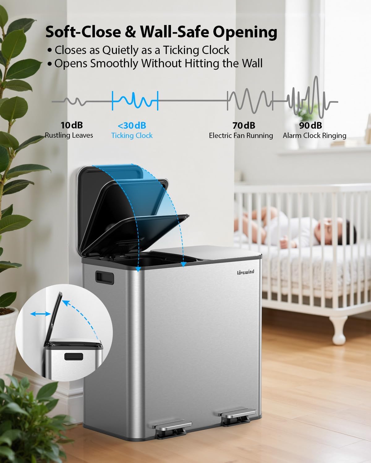 - Stainless Steel Construction: Lovewind dual trash can is made from high-quality stainless steel, making it a long-lasting addition to your kitchen and easy to clean
