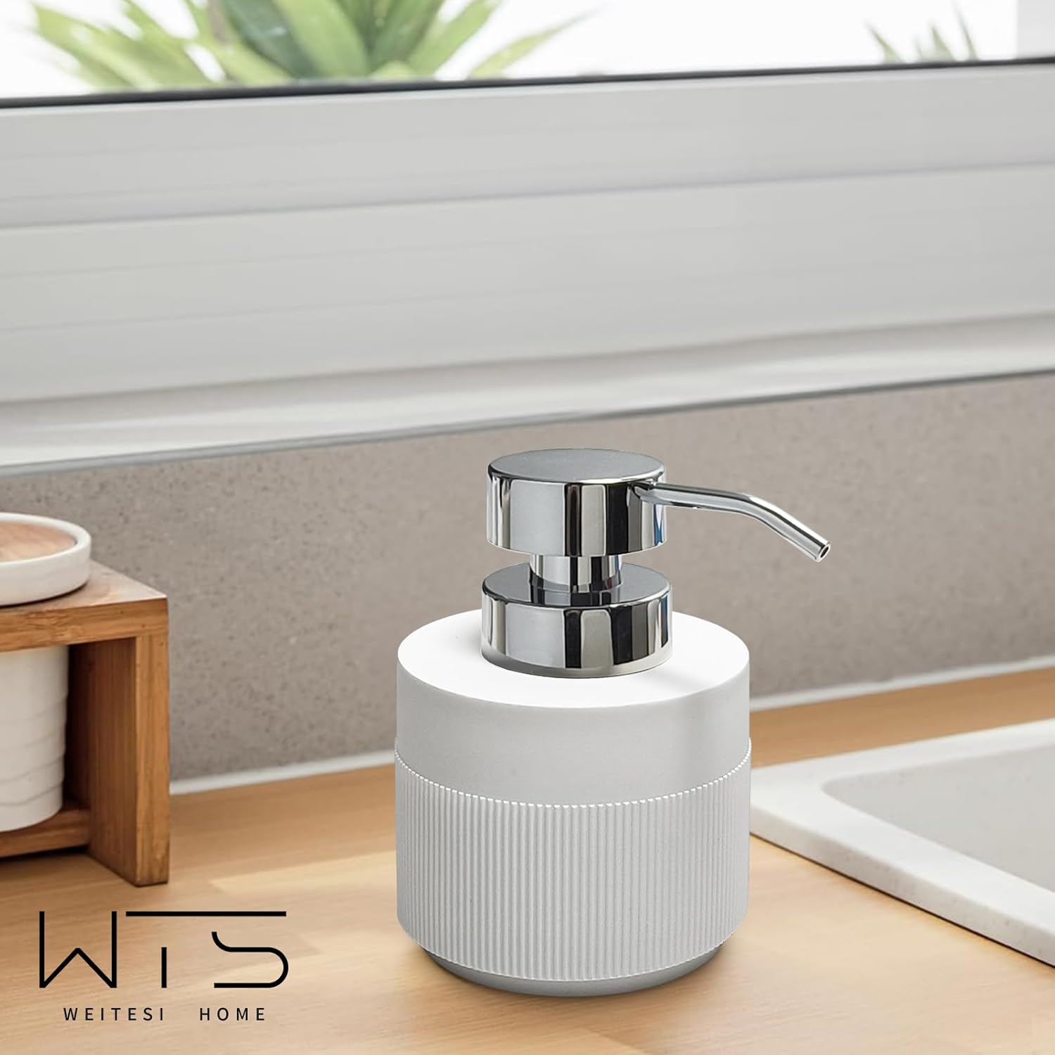 - Durable Construction with Reliable Plastic Pump: Crafted from premium resin, this soap dispenser is designed for exceptional durability, ensuring it stands up to daily use without chipping or cracking. The high-quality plastic pump is easy to press, delivering just the right amount of soap or shampoo every time, providing dependable performance for years to come.High-quality plastic pump do not rust and have a long service life.