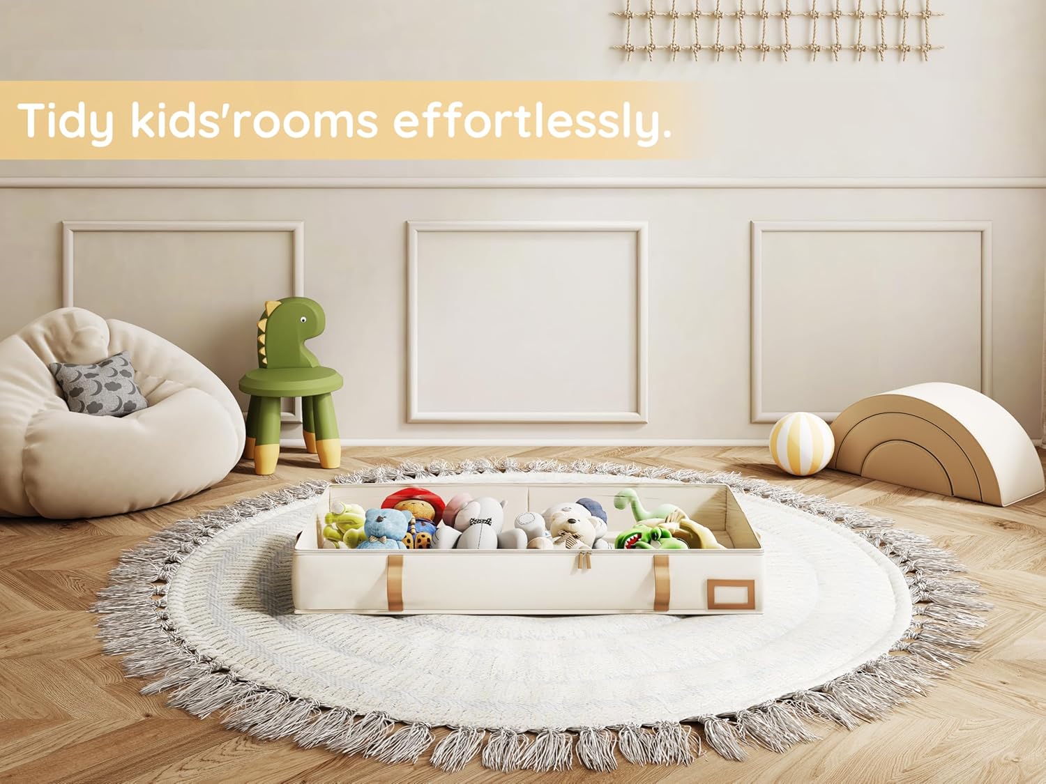 - 【High-end Fabric & Large Capacity】Made from high-end, durable fabric, our under bed storage bags measure 33.7"L x 17.1"W x 6"H inches, providing generous space for all your storage needs. Perfect for storing seasonal clothing, blankets, comforters, and more, these containers combine ample space with an elegant beige design to seamlessly fit any room