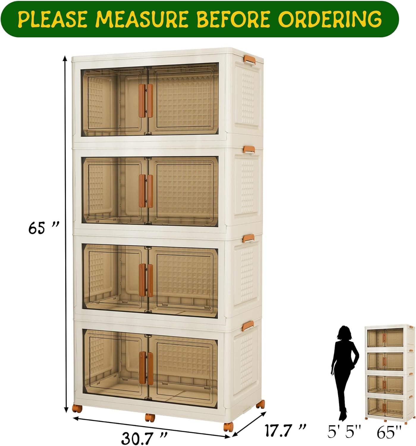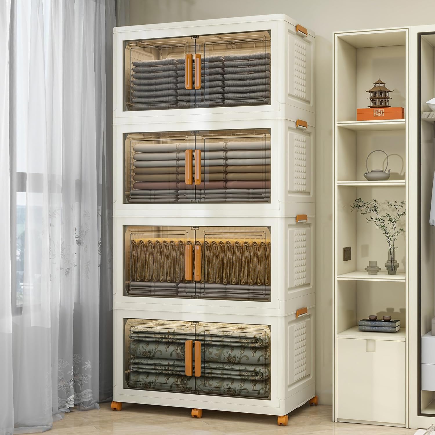 4 Tier Extra Large Stackable Storage Bins with 1 Lid 155 QT/Tier, Collapsible Plastic Box Storage Bin with Wheels, Home Containers Boxes Closet Organizers for Living Room, Office, Dorm