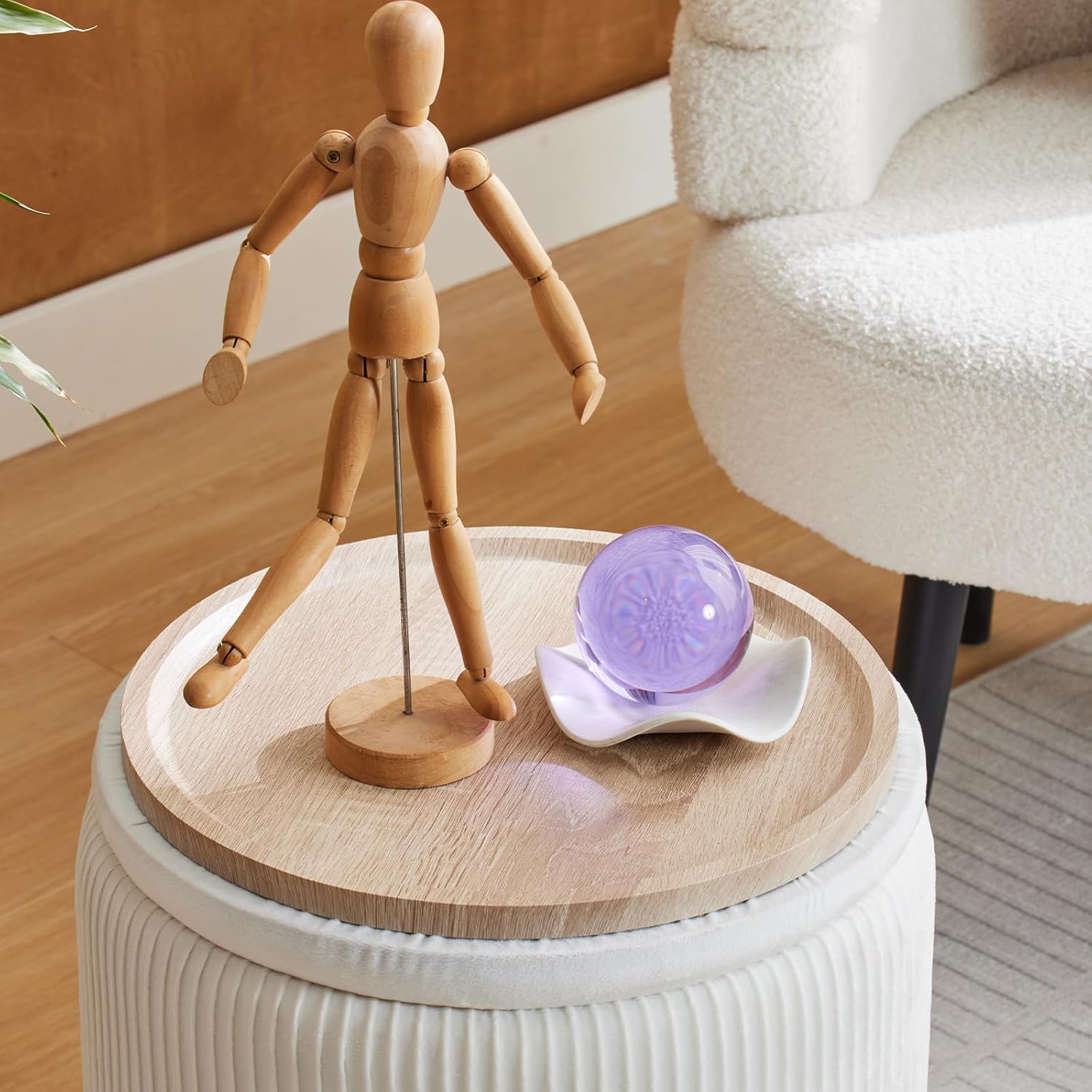 Round Ottoman with Storage Set of 2-Upholstered Velvet Vanity Stool for Makeup Multifunctional Ottomans Coffee Table Padded Seat Foot Rest for Living Room&Bedroom (White-Upgrade Tray Lid)