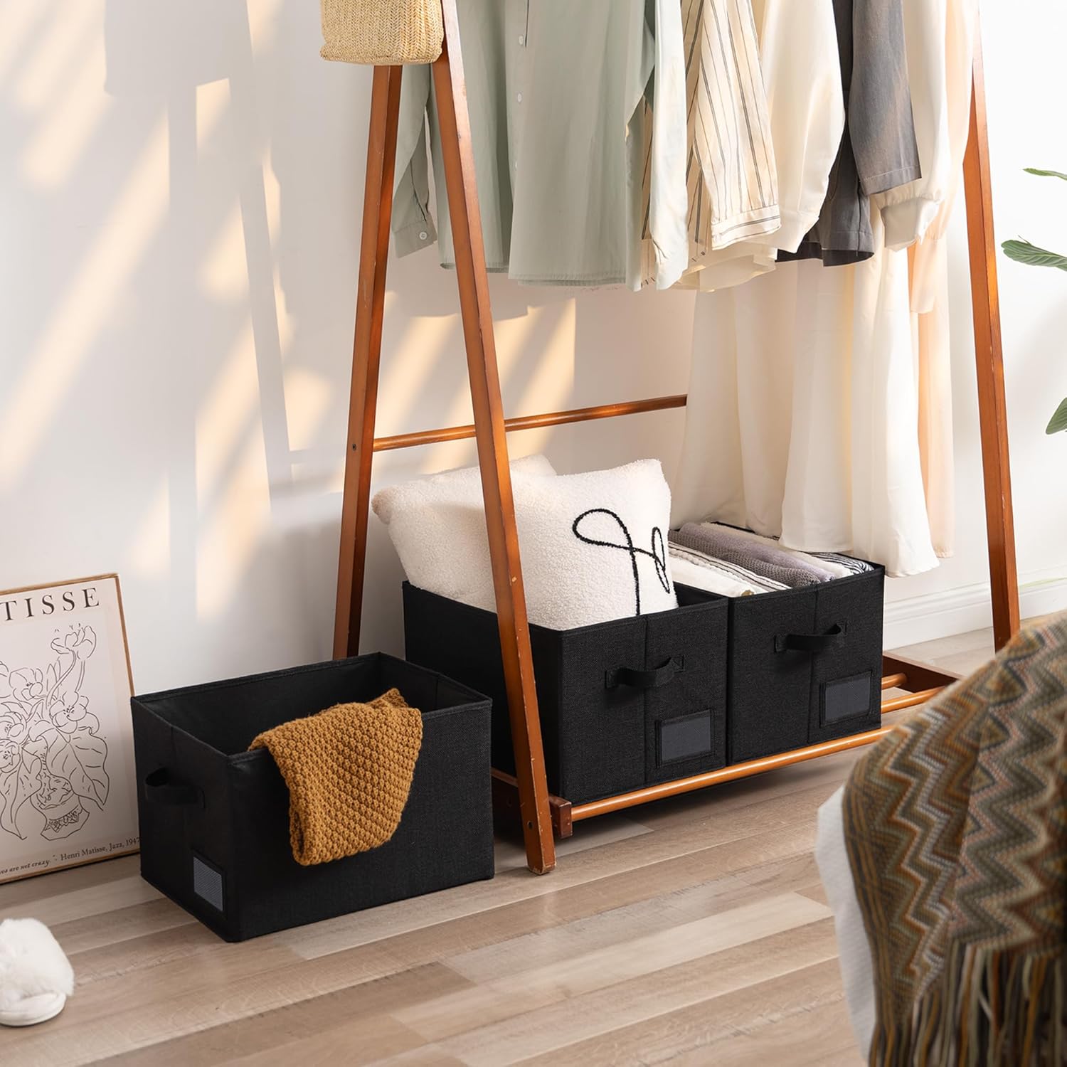 GRANNY SAYS Storage Baskets for Shelves, Fabric Storage Bins for Clothes, Closet Organization Bins, Collapsible Storage Bins with Handles, Decorative Storage Box, Black, Extra Large, 3-Pack
