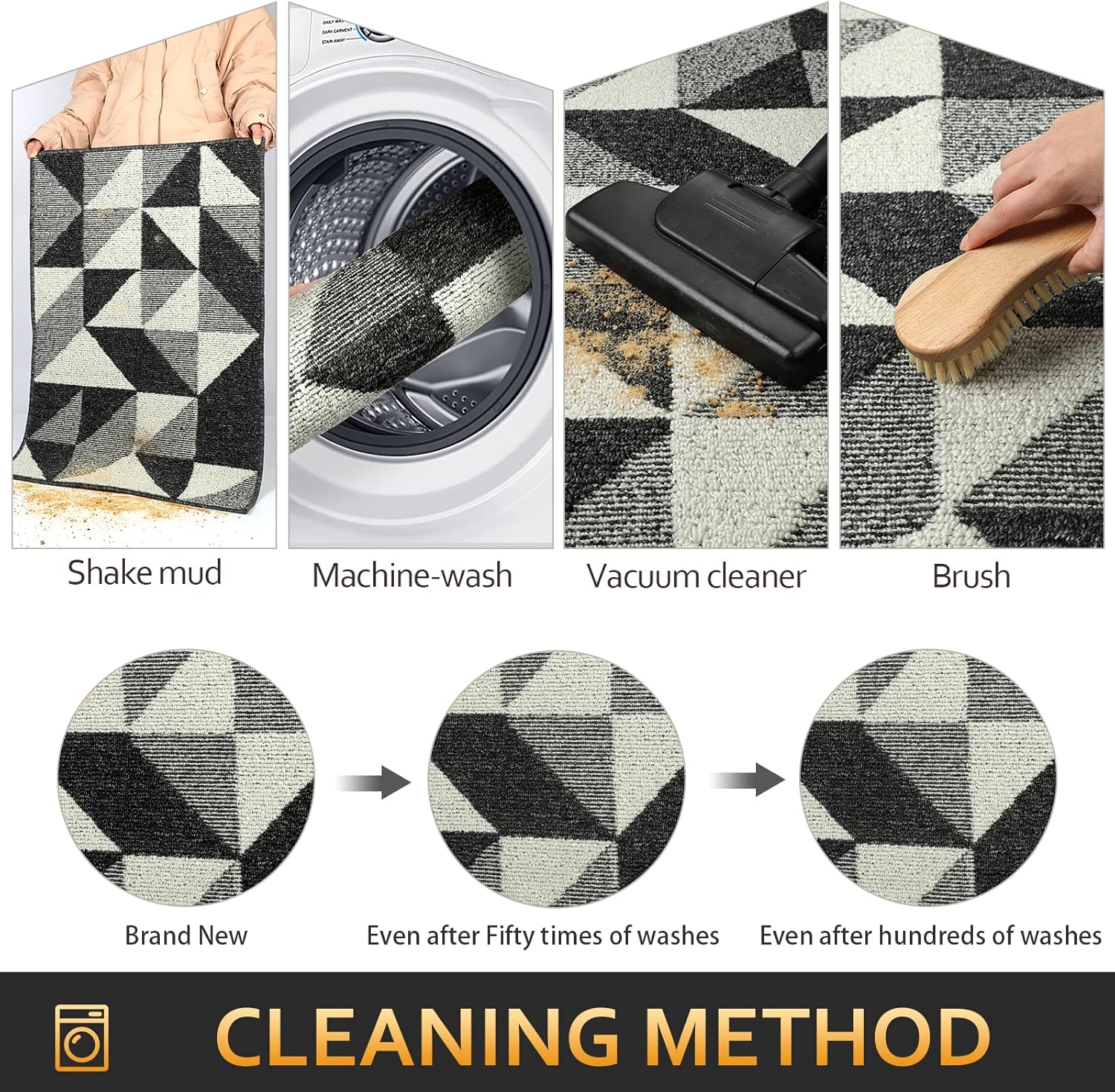 - EASY TO CLEAN: The unique rib fabric design removes dirt from shoes easily. When your doormat gets dirty, first shake it off outdoors or over your garbage bins, then sweep with a broom or vacuum regularly or use a garden hose to rinse the mat outdoors. For deeper clean: machine washable, use water under 86 (℉) / 30 (℃). Do not iron. Do not bleach. Do not expose it to the sun for a long time.