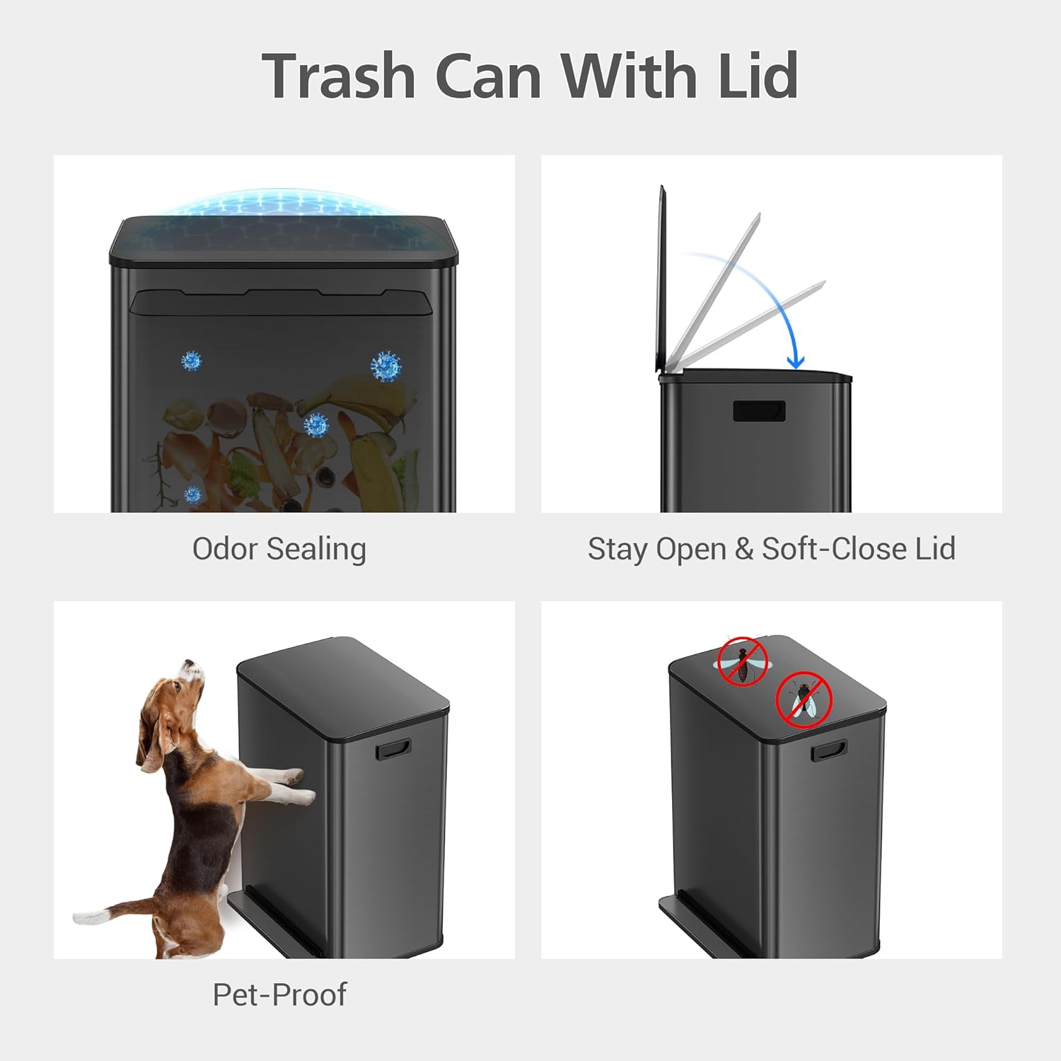 - [Odor Seal] The lid of the trash can effectively prevents odors from escaping, maintains a tidy appearance, and supports efficient waste sorting.