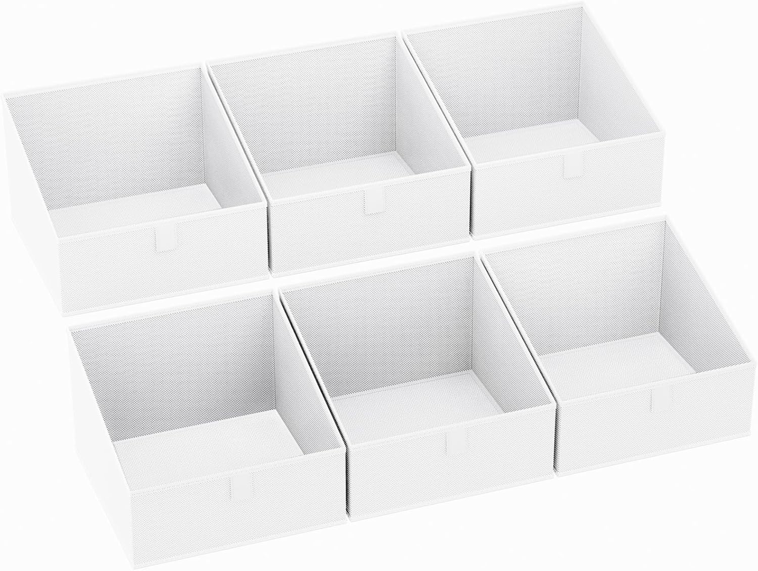 DIMJ Closet Storage Bins 6 Pack - Fabric Trapezoid Organizer Bin, Foldable Storage Baskets for Shelves, Closet Shelf Organizer, Clothing Storage Box for Toys, Books, Towel, Clothes, White
