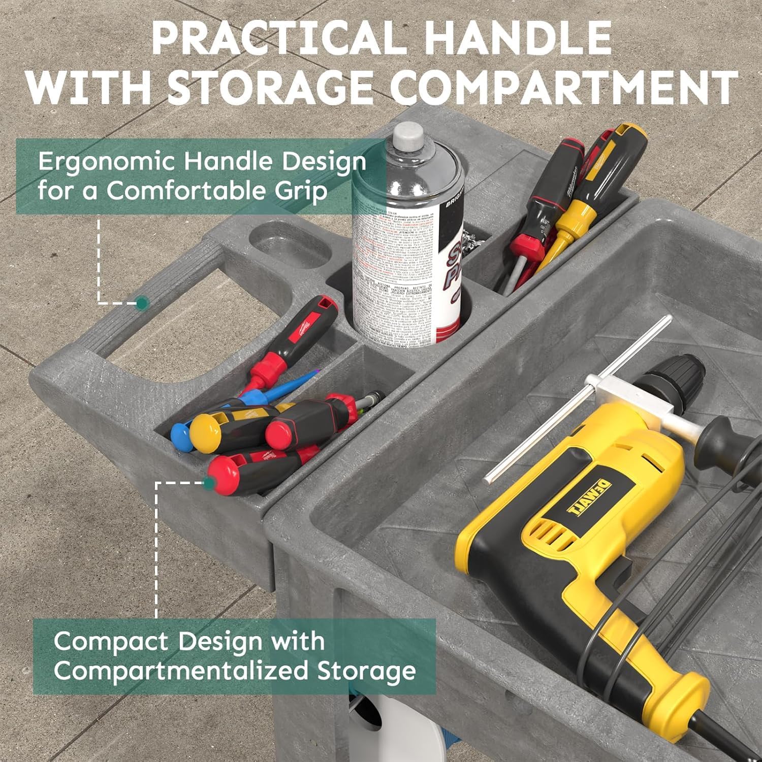 - 【Portable Design】Plastic utility service carts are equipped with ergonomic armrests that allow you to move with less effort and experience a comfortable grip. Modular storage compartments and small holes are designed to keep your tools handy and enhance your experience.