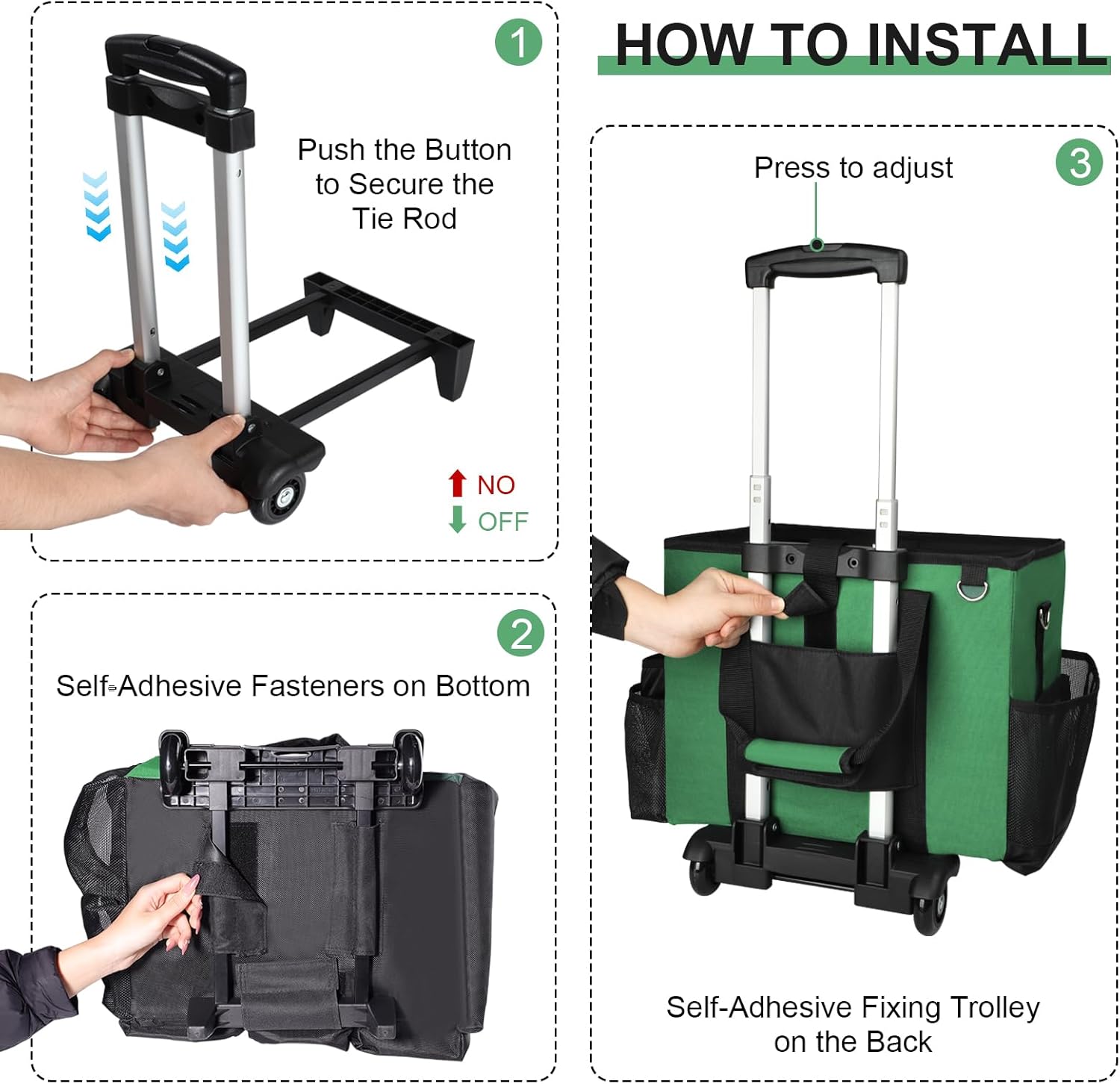 - Detachable Trolley: The trolley can be easily detached, transforming the caddy into a portable bag for versatile use.