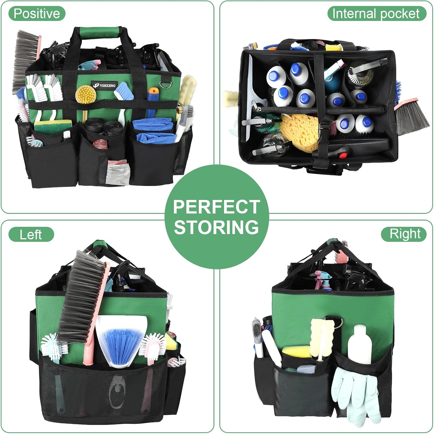 - Large Capacity: This cleaning caddy bag offers ample storage space with multiple compartments to organize your cleaning supplies and tools.