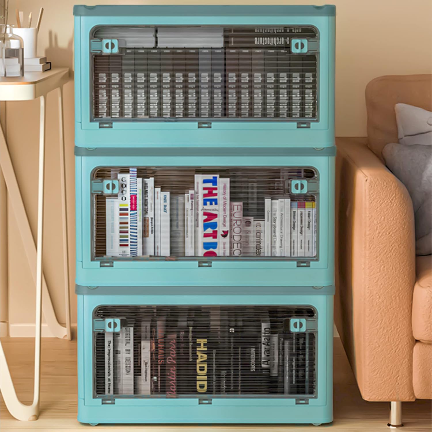 - [Product size]The storage bin measures 16.1 inches long, 11.4 inches wide & 9.4 inches deep(Fold 2.3 inches),The transparent container is durable and made of high-quality plastic materials with no odor and no harm to the body