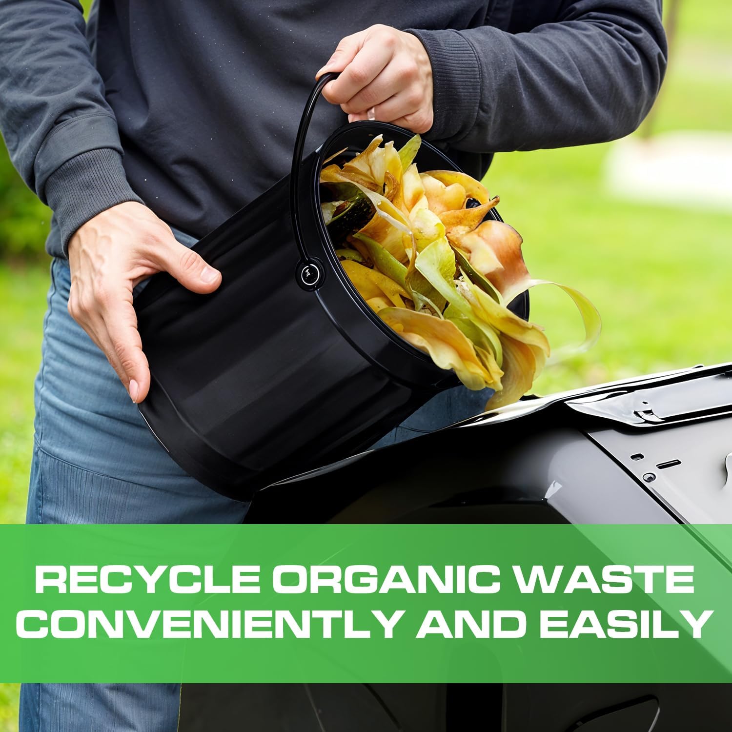 - Kitchen Compost Bin: Our compost bucket, indoor compost bin kitchen odorless has an attractive black finish that adds a pop of color to your kitchen countertop. Compact and sleek this food scraps bin for kitchen with charcoal filter, fitting seamlessly into most kitchen spaces.